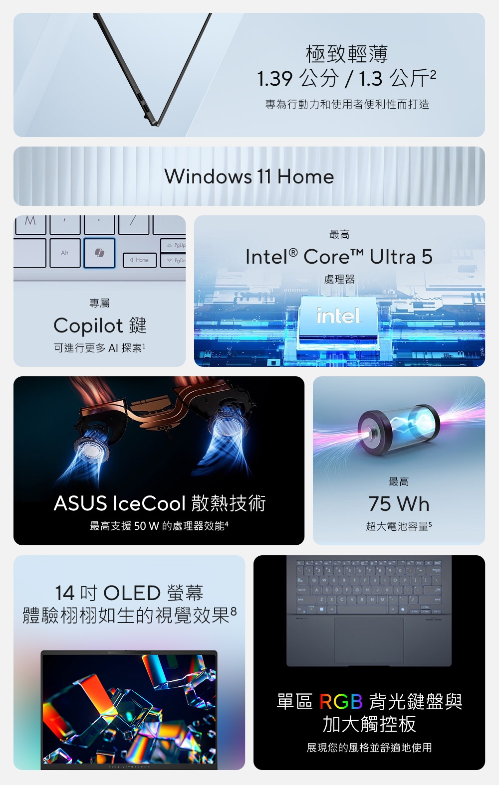 89%屏佔比 100% DCI-P3 專屬 Copilot 鍵 Evo認證 最高600 尼特峰值亮度