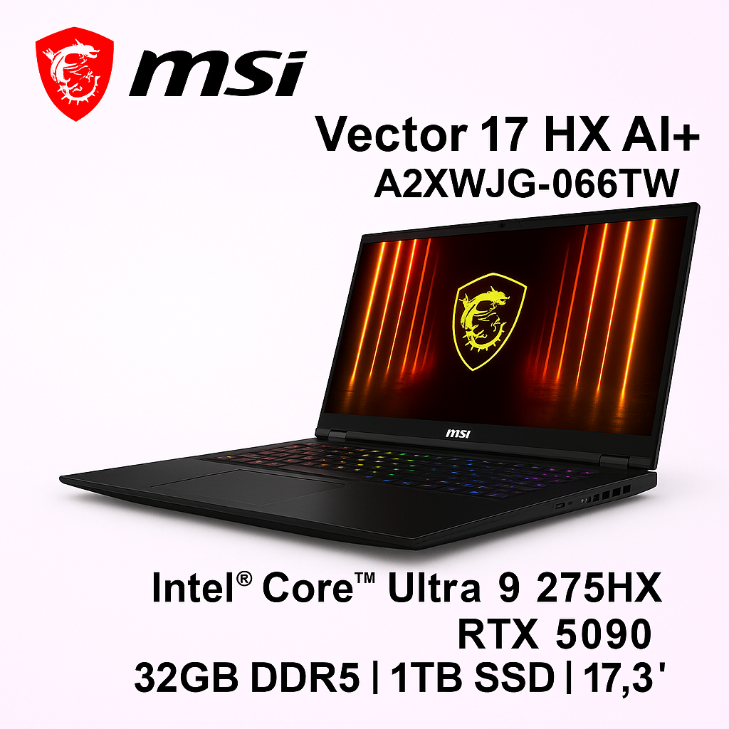MSI 微星 Vector 17 HX AI A2XWJG-066TW (Intel Core Ultra 9 275HX/32G/RTX5090/1T SSD/W11/QHD+/240Hz/17) AI電競筆電🎈送保護套/滑鼠墊/鍵盤膜🎈