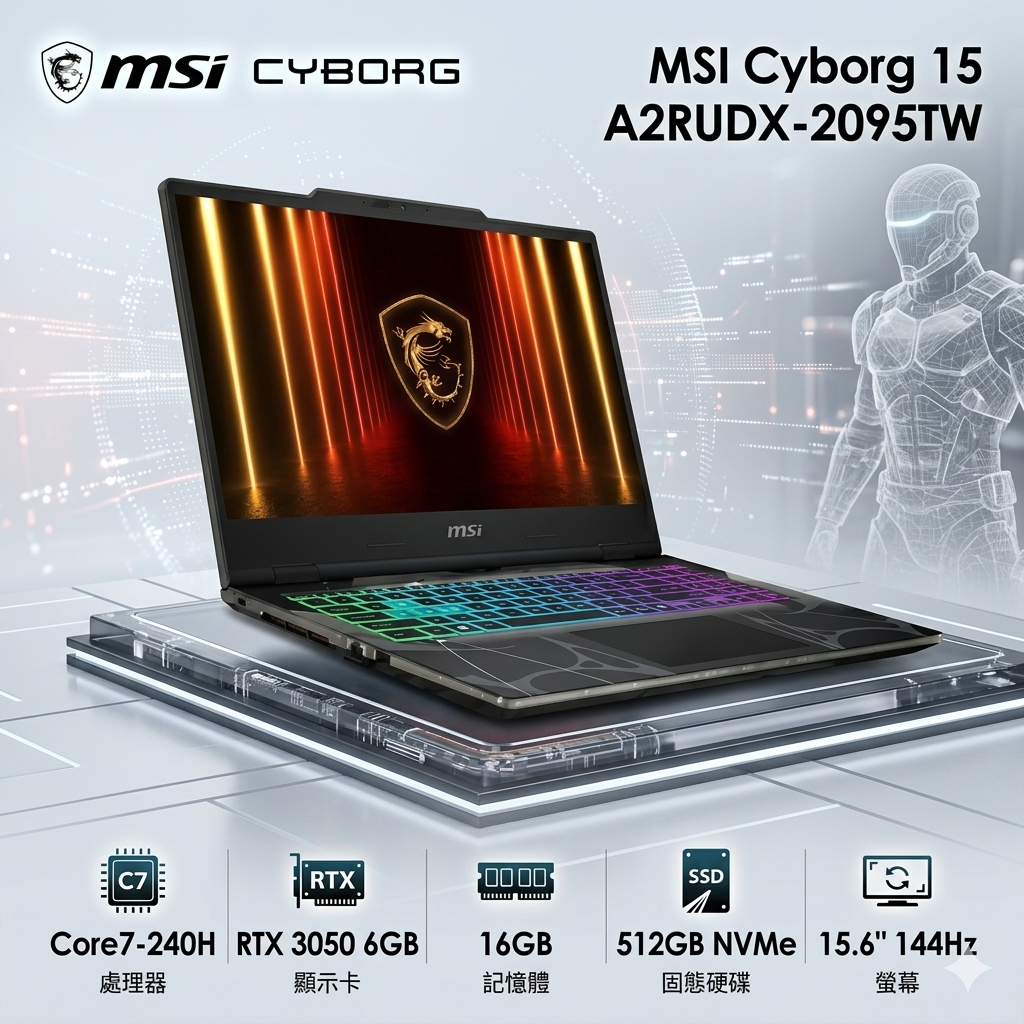MSI 微星Cyborg 15 15.6吋 電競筆電黑色(C7-240H/16G/512GB SSD/RTX3050-6G/W11/A2RUDX-2095TW)🎈送保護套/滑鼠墊/鍵盤膜🎈