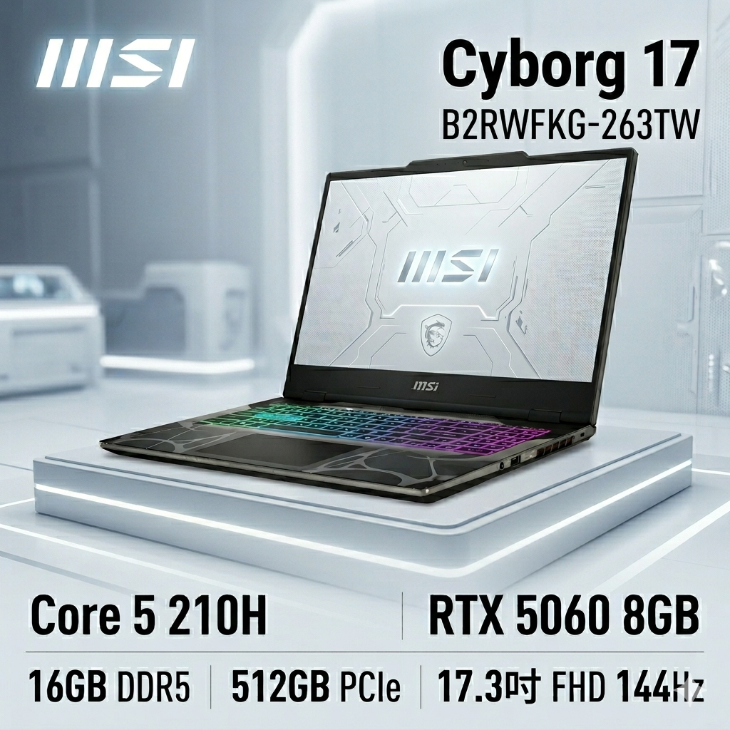 MSI Cyborg 17 B2RWFKG-263TW 微星輕薄戰鬥電競筆電/Core 5-210H/RTX5060 8G/16GB DDR5/512GB PCIe/17.3吋 FHD 144Hz/W11/四區RGB鍵盤背光/3年保🎈送保護套/滑鼠墊/鍵盤膜🎈