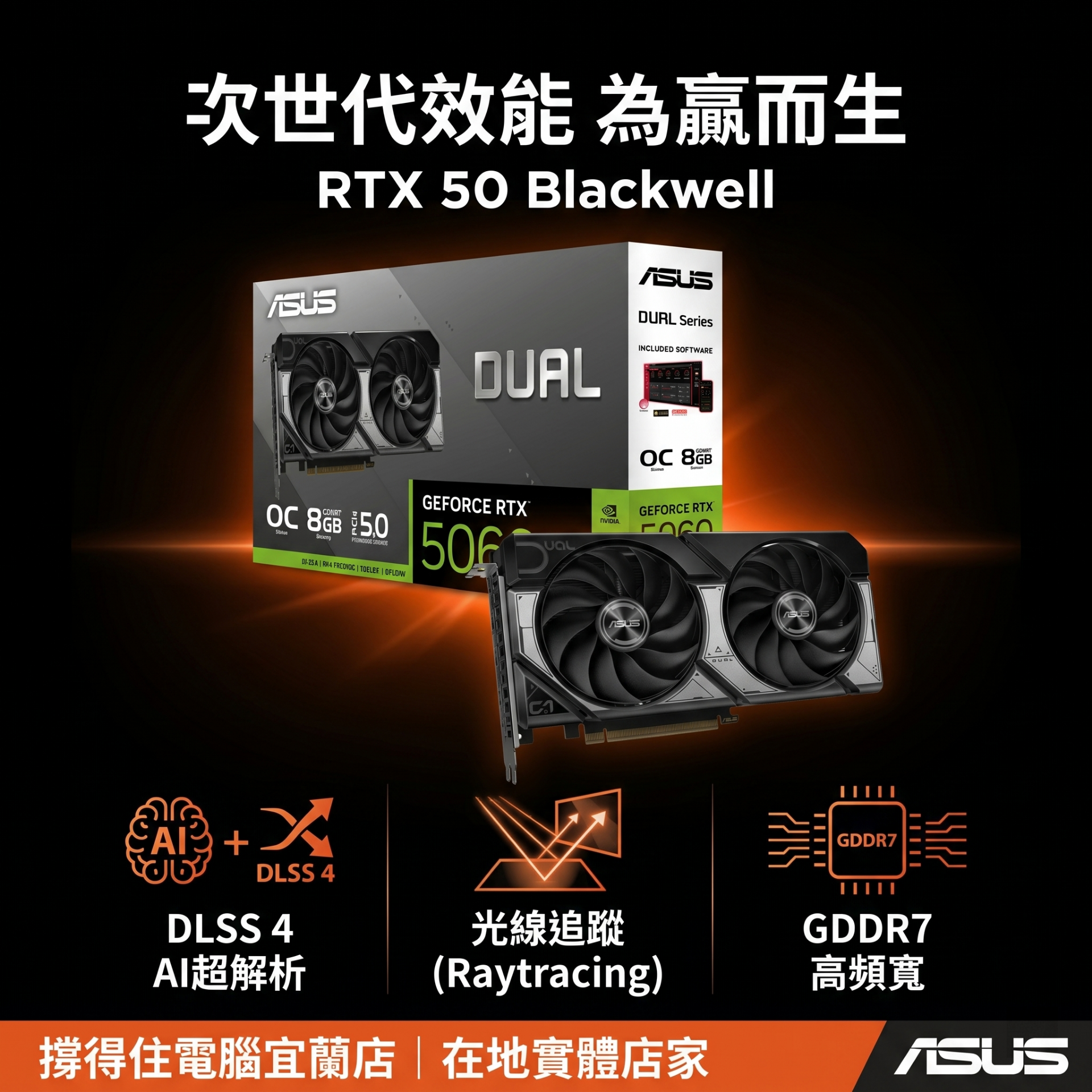 ASUS官方網站介紹- Dual GeForce RTX™ 5060 8GB GDDR7 OC 超頻版