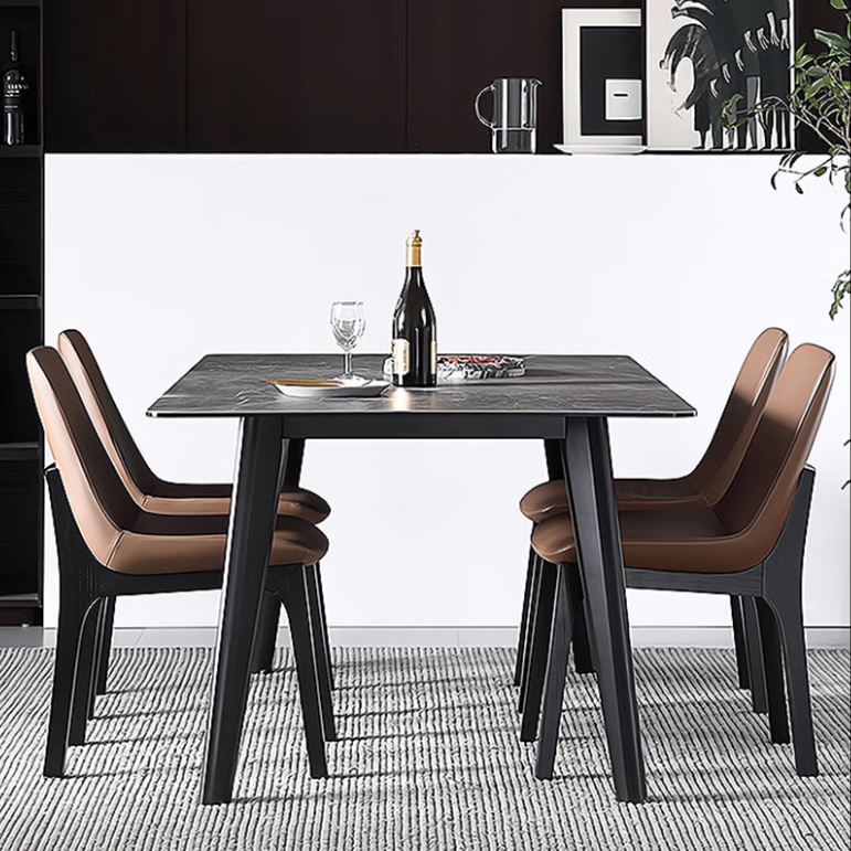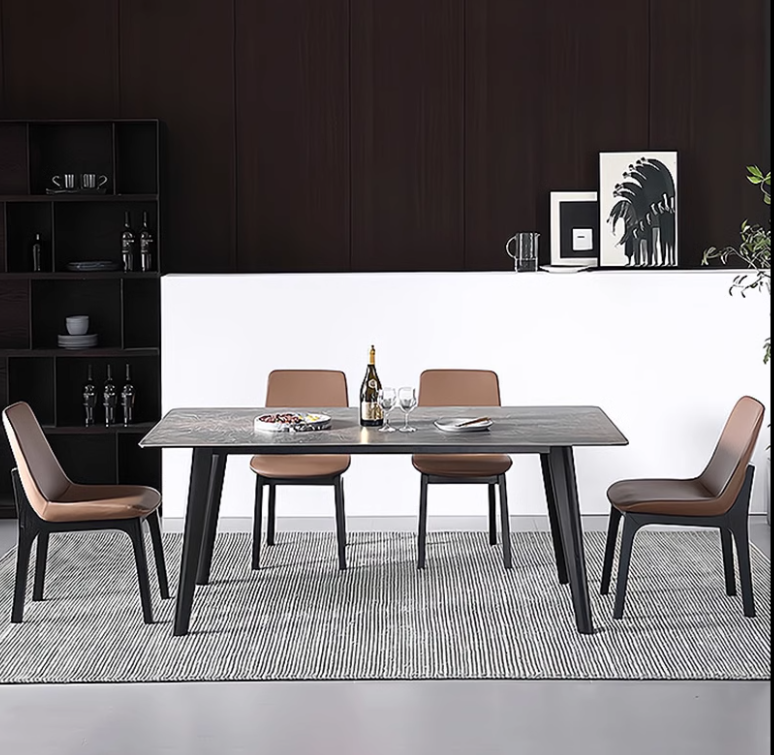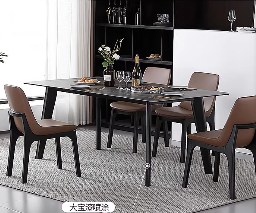 【豪華現代風岩板桌系列】岩板餐桌 鐵角鍍槍黑鈦/北歐真皮實木餐椅