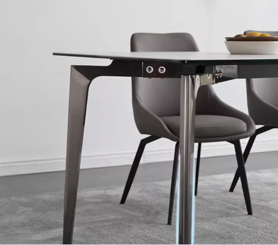 【豪華現代風岩板桌系列】布倫丹極簡風 岩板餐桌 鐵角鍍槍黑鈦/現代餐椅/會議桌椅