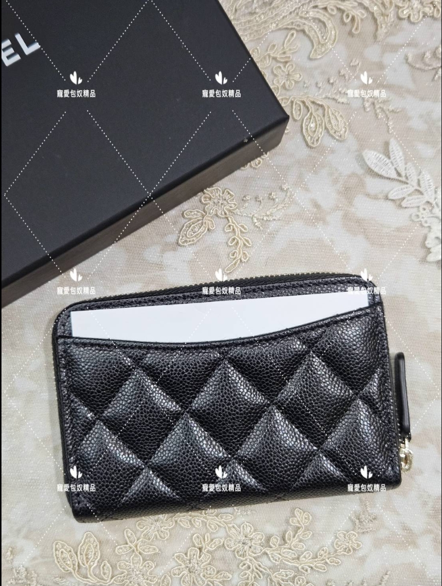 ✨CHANEL 荔枝黑金 加大ㄇ字卡片零錢包
