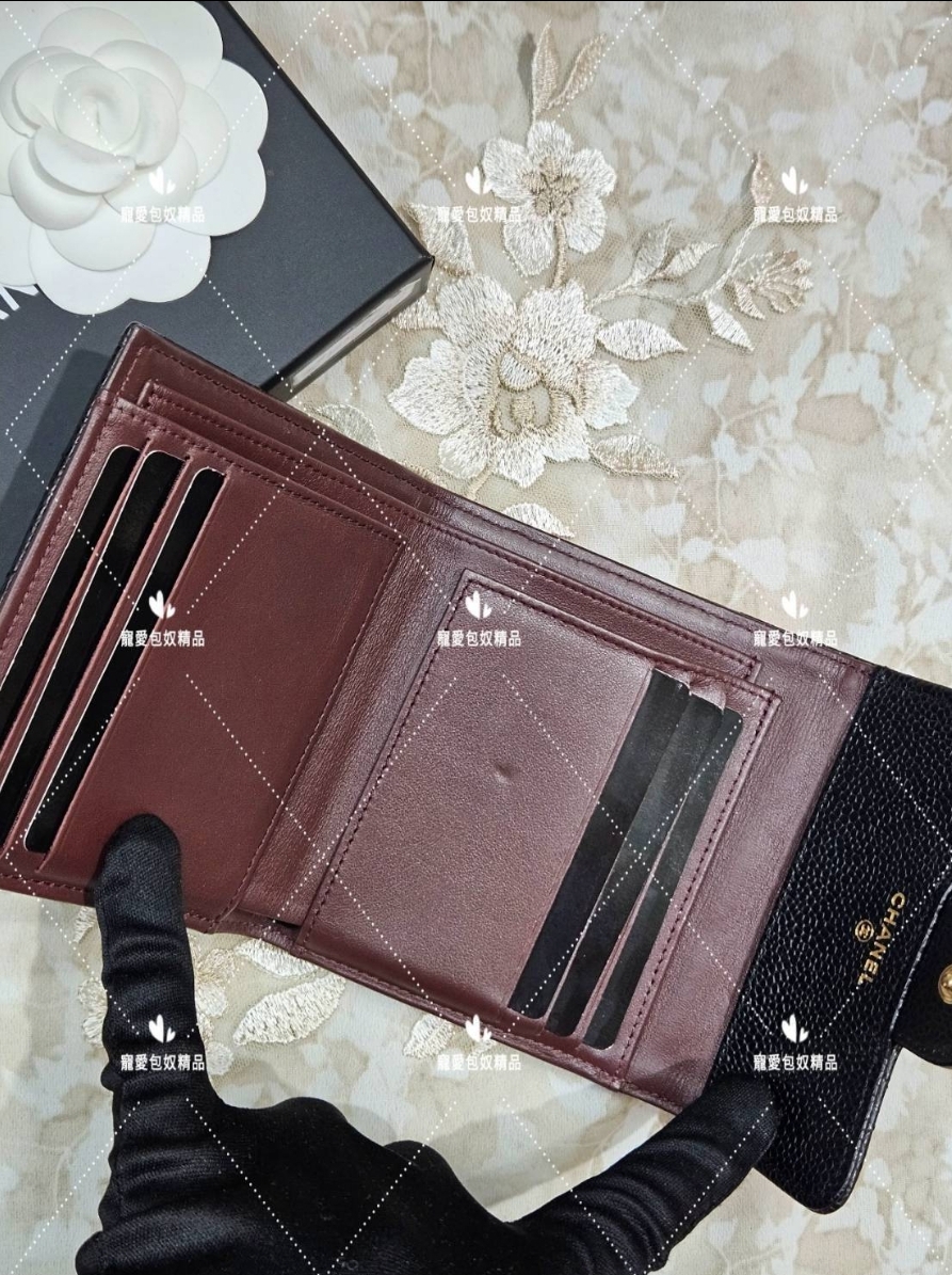 ✨CHANEL coco 黑色荔枝金 三折短夾