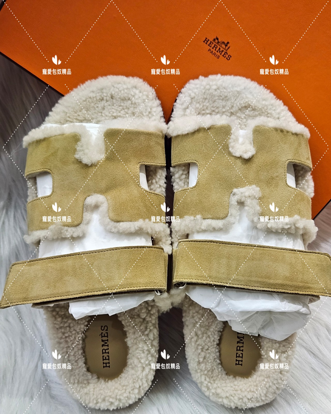 ✨Hermès 二舅泰迪奶茶色毛毛拖鞋 38號