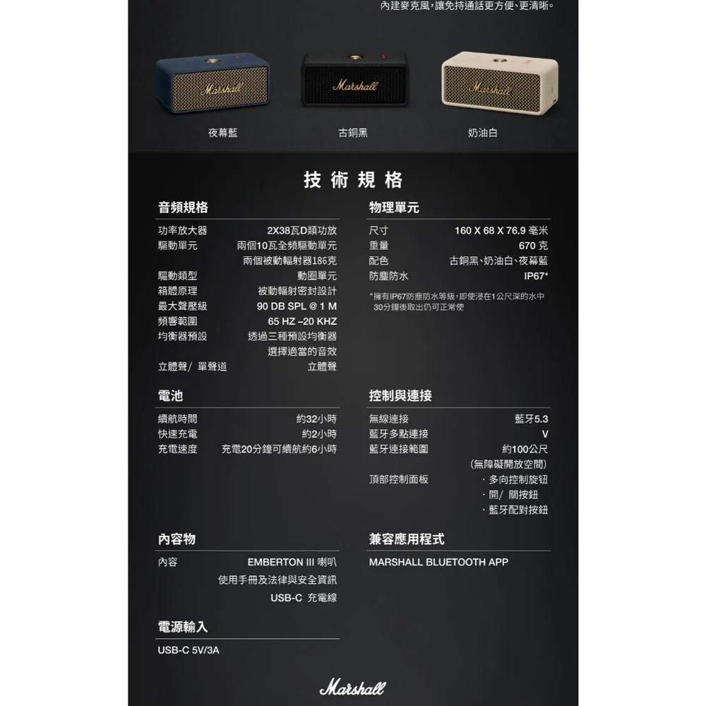 Marshall Emberton III 第三代|藍牙音響|線上登錄18個月保固 原廠公司貨