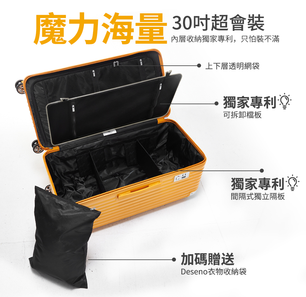 💫帝安諾-實體店面 Deseno 笛森諾 尊爵魔力 防爆新型拉鍊行李箱 運動款胖胖箱 特仕版 30吋 南瓜黃