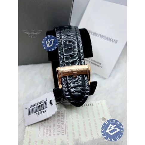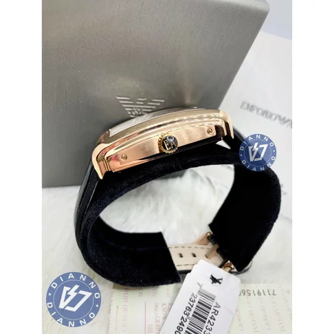 帝安諾 - 實體店面Armani 阿瑪尼 手錶 男士 鱷魚皮 古典玫瑰 金雙鏤空機械腕錶帶 方錶 黑色 AR4233