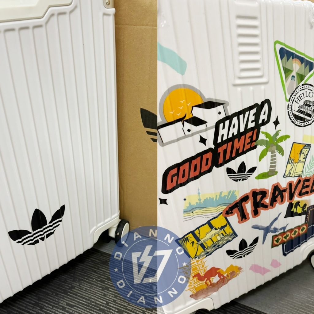 現貨 帝安諾 實體店面 adidas 愛迪達行李箱 三葉草 白色 塗鴉款 旅行箱 收納箱 拉鍊拉桿箱 登機箱 海關鎖