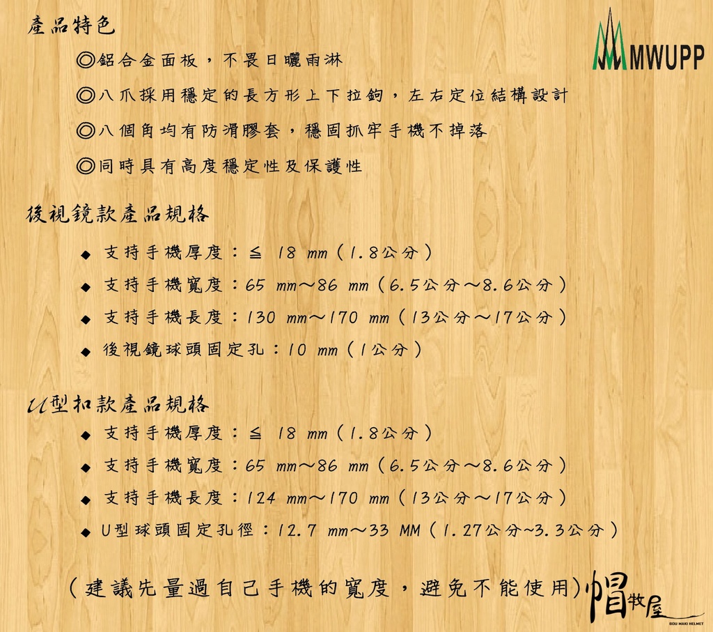 【帽牧屋】五匹 MWUPP 章魚手機架 金屬底座後照鏡款車架 U型橫桿車把 機車 重機 手機支架