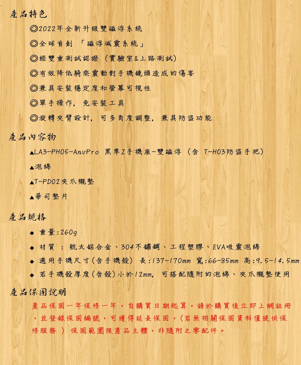 LA3-PH05-AnvPro 黑隼Z手機座-雙磁浮 (含 T-H03防盜手把)