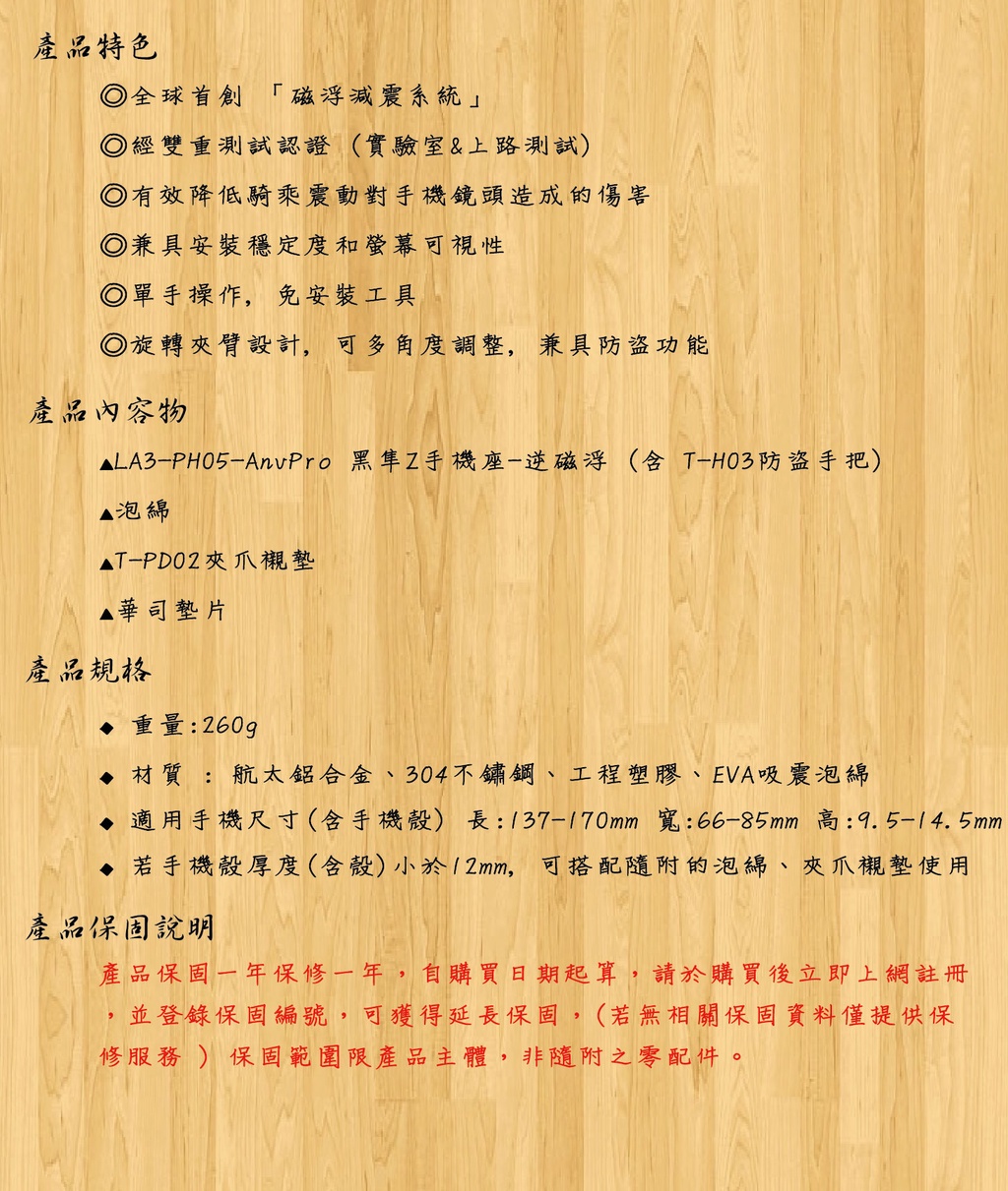 LA3-PH05-AnvR 黑隼Z手機座-逆磁浮 (含 T-H03防盜手把)
