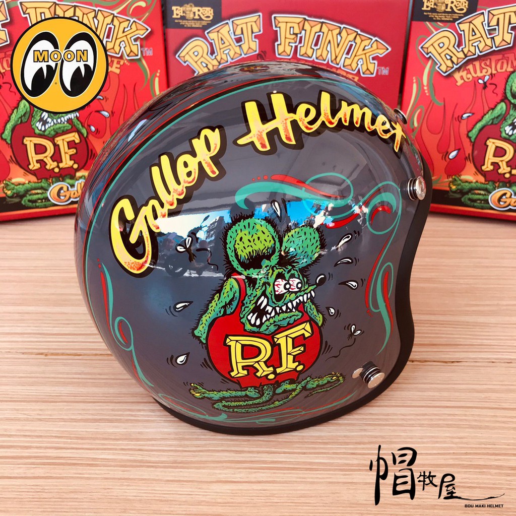 【帽牧屋】*Gallop X Rat Fink 老鼠芬克 聯名限定 四分之三罩安全帽 半罩 3/4 芬克鼠 水泥灰*