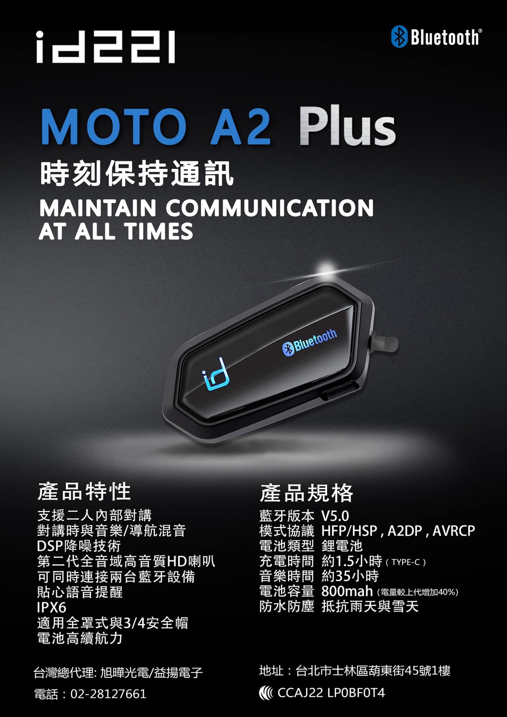 【帽牧屋】ID221 MOTO A2 PLUS 安全帽 藍牙耳機 高音質 混音 對講 高電量 全罩 3/4罩