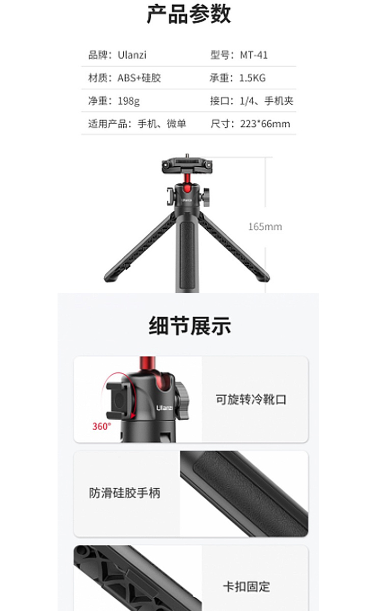 免運【Ulanzi 優籃子】MT-41 手機類單快拆雲台 桌面三腳架 (公司貨) #支持橫拍豎拍 #四段高度
