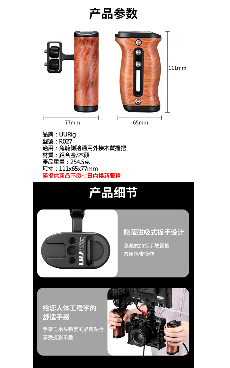 ■型號:【Ulanzi 優籃子】R027 兔籠側邊通用木質握把