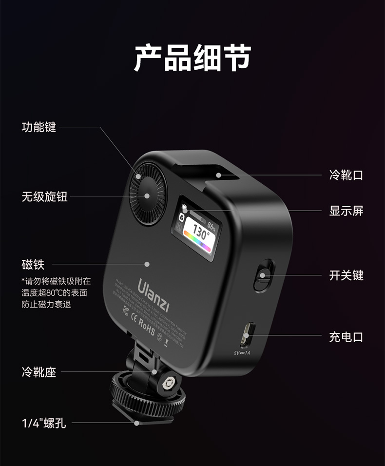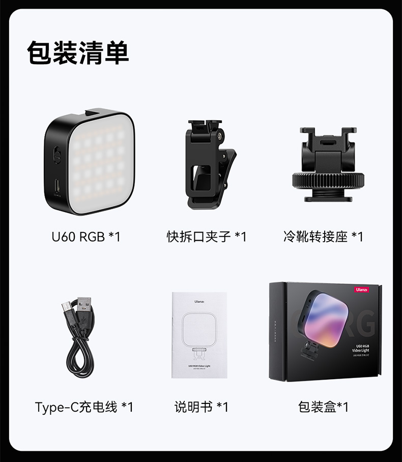 免運【Ulanzi 優籃子】U60 RGB 磁吸方塊補光燈 攝影燈 Type-C接口 附手機夾 (公司貨)