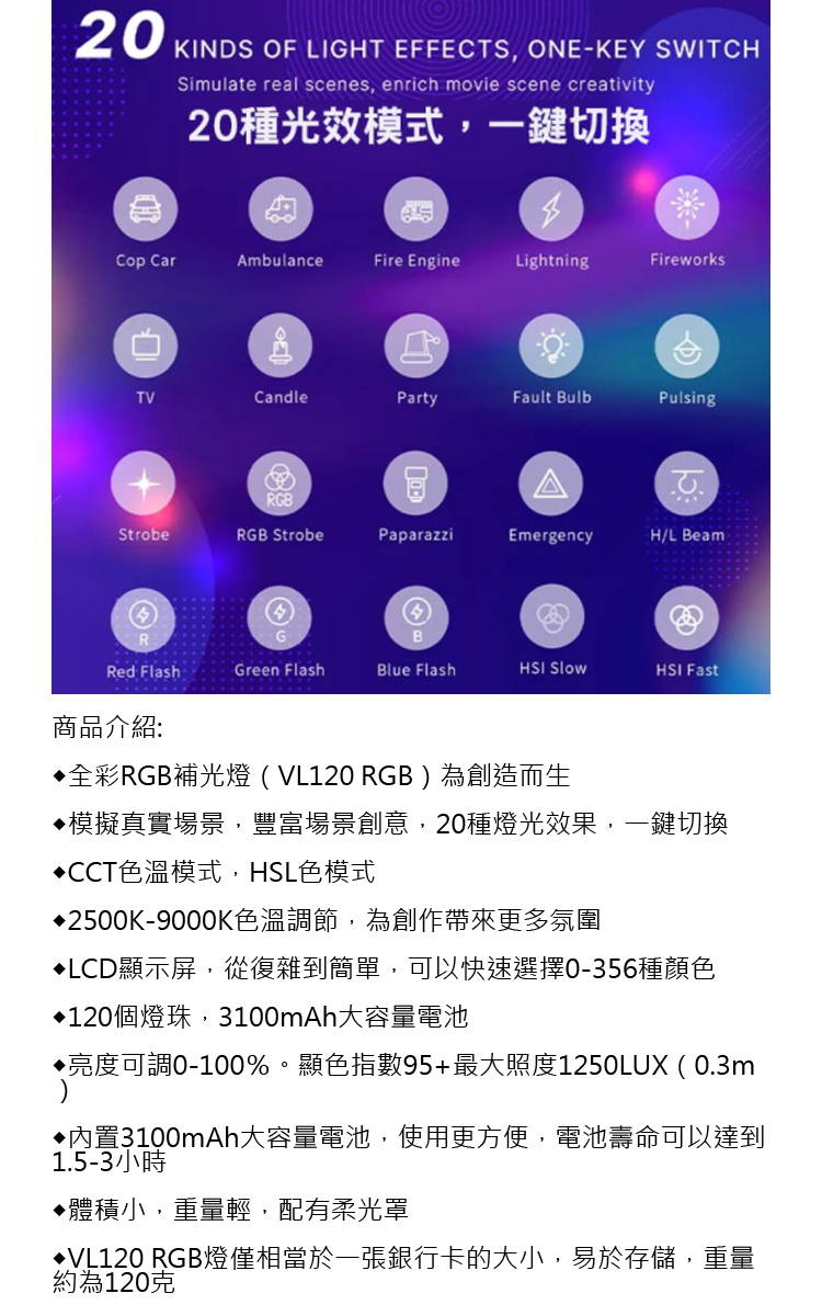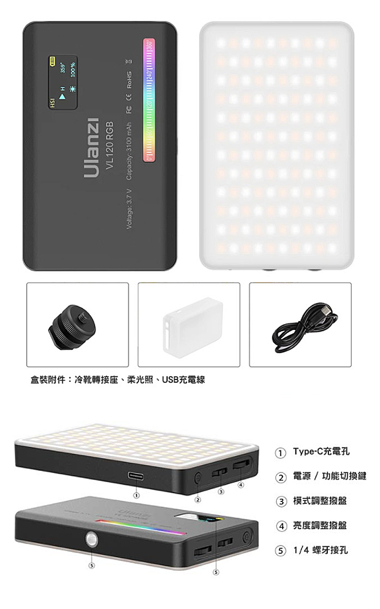 ■型號:【Ulanzi 優籃子】VIJIM VL120 RGB 全彩補光燈