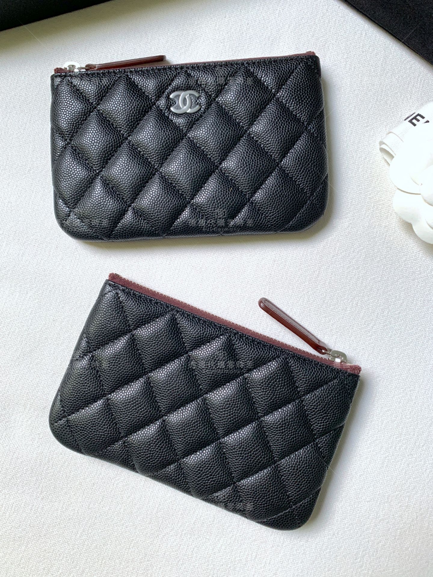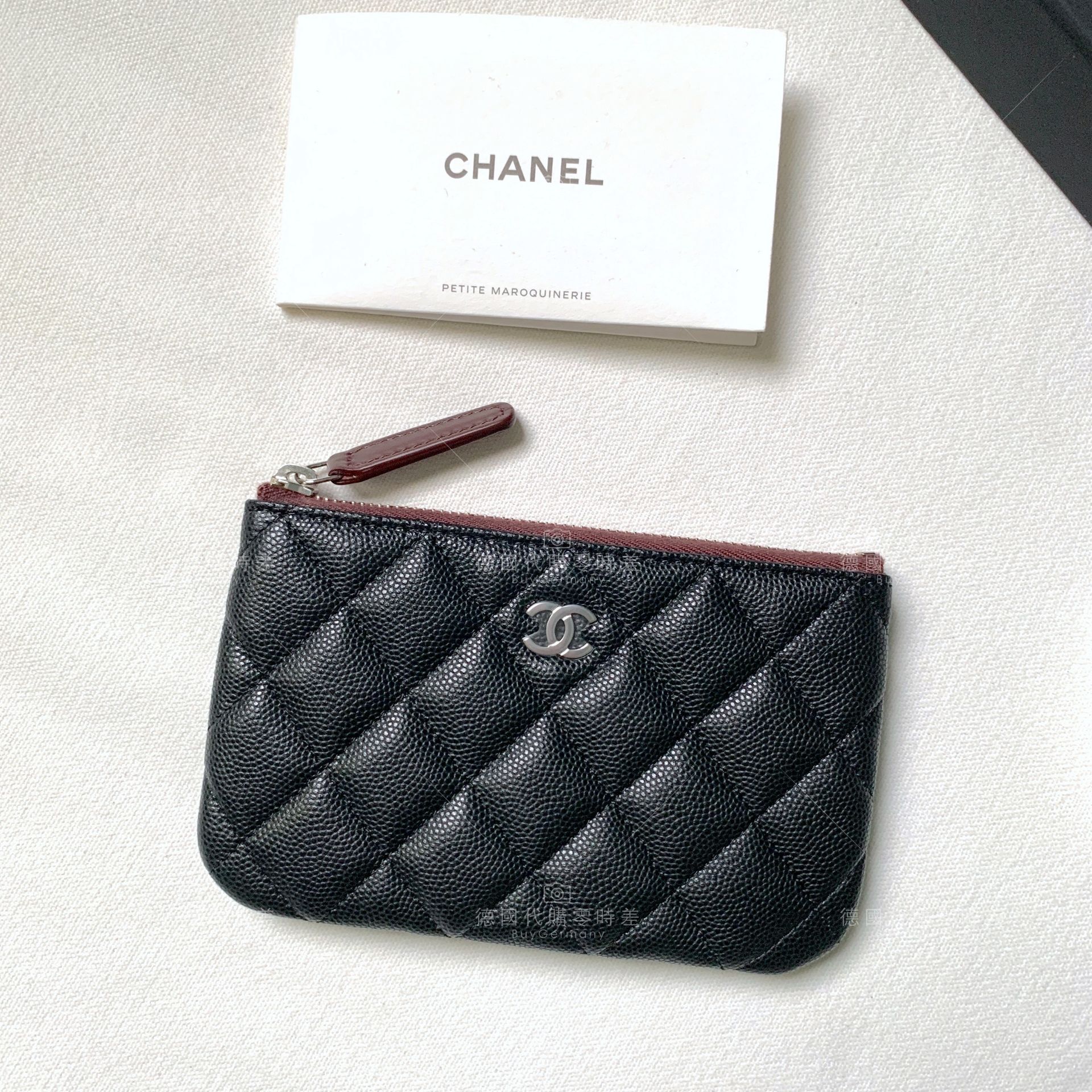 Chanel 黑牛銀一字拉鍊零錢包 📦現貨