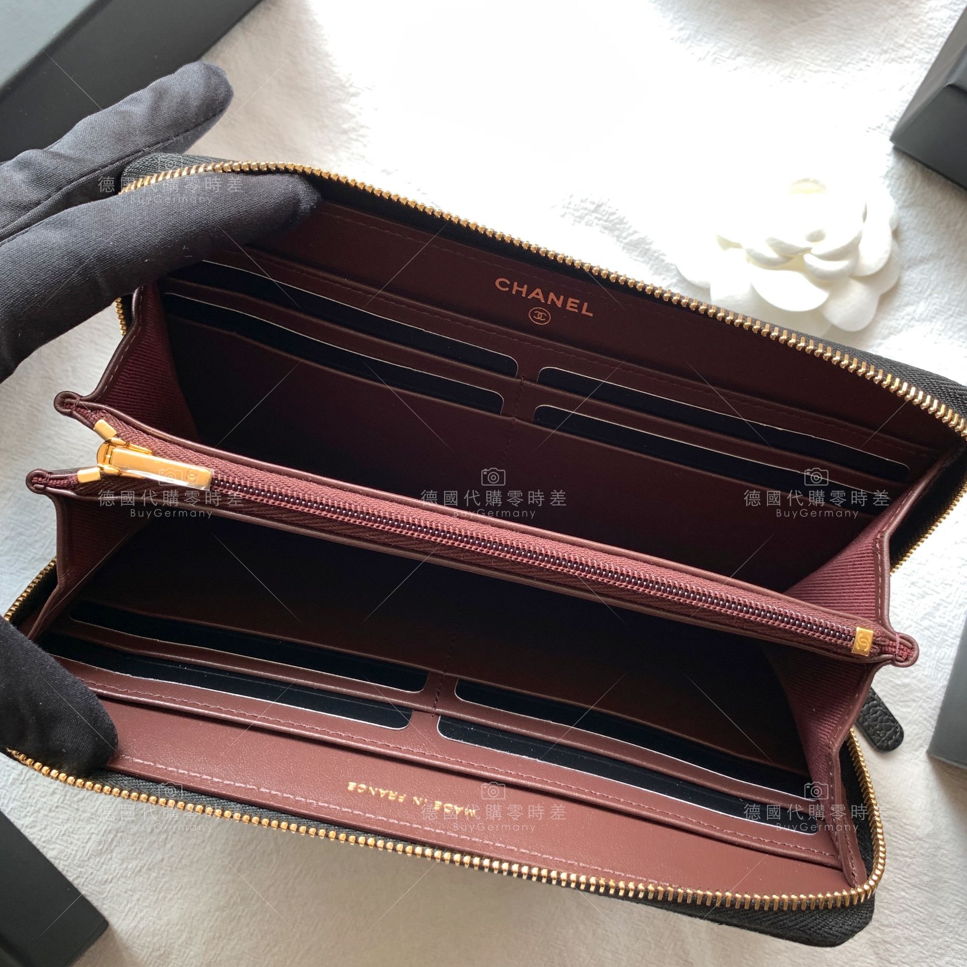 Chanel 黑荔枝牛皮金釦拉鍊長夾 📦在台現貨