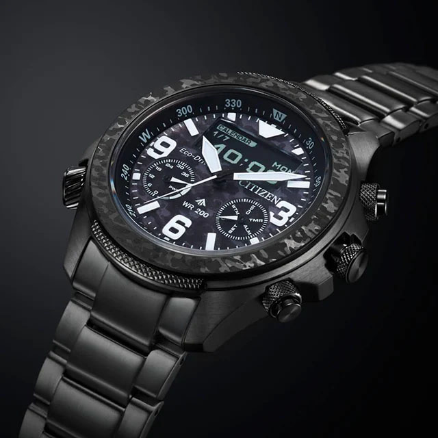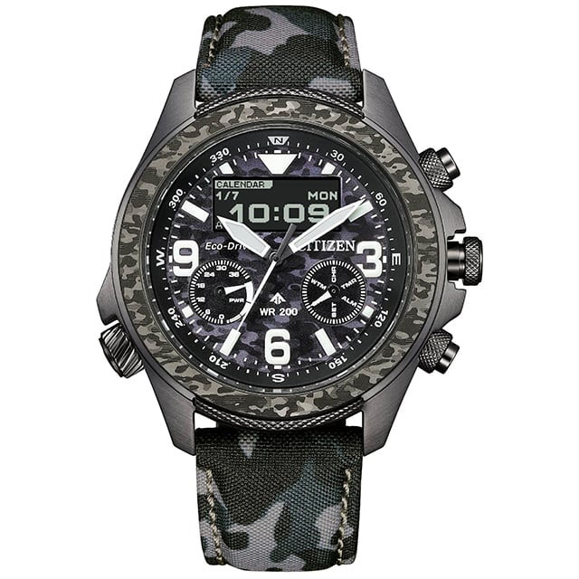 日本星辰Citizen PROMASTER 35週年限定 光動能液晶顯示迷彩腕錶 JV1008-63E