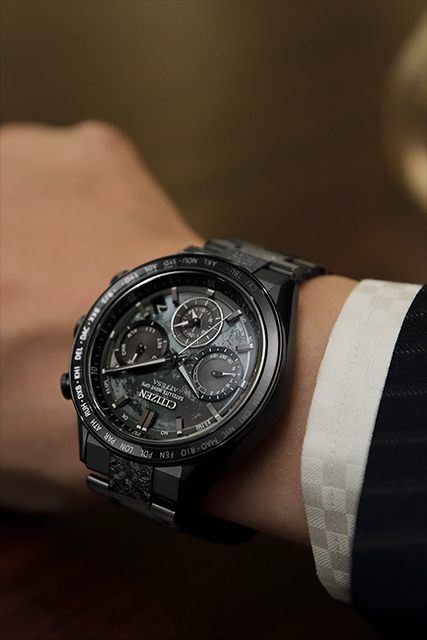 錶盤:白蝶貝(噴墨印刷多色)       錶帶:黑鈦色+結晶鈦色