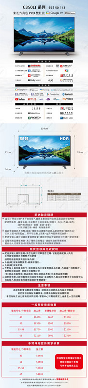 •1年全機保固 •低藍光護眼認證 •4K HDR超亮面板 •支援蘋果Airplay 2 •東芝六真色PRO技術 •內建GOOGLE TV系統