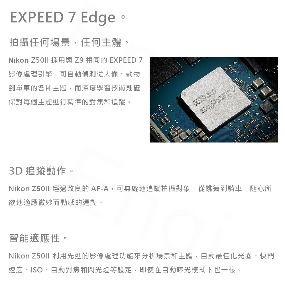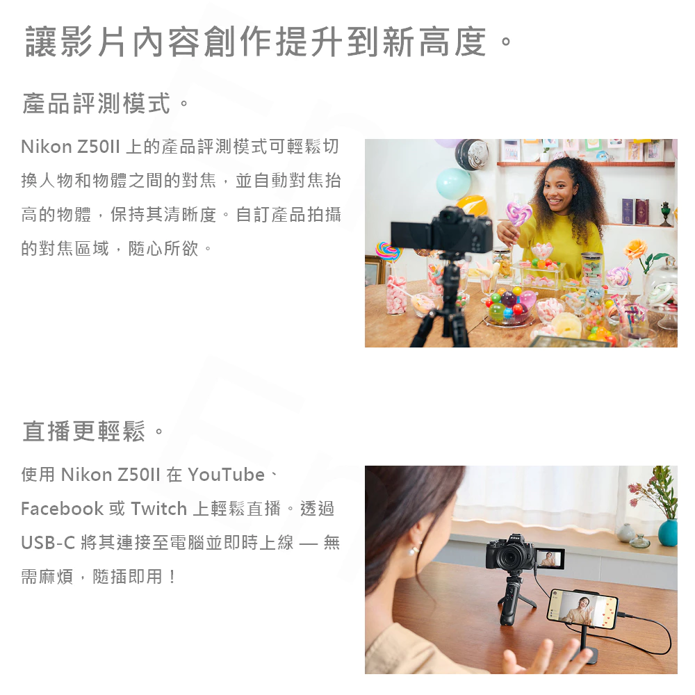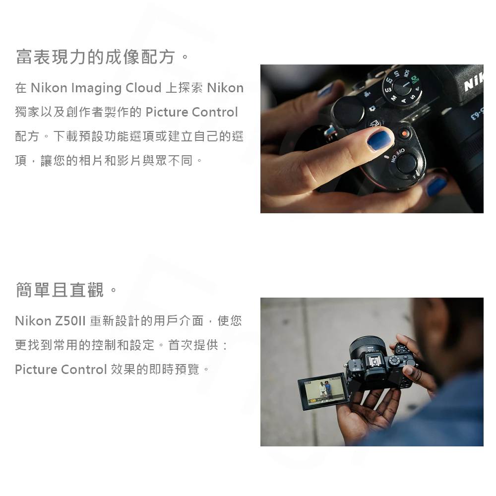 Z50II不僅是一台入門相機。它為新用戶提供生動的體驗,激勵他們透過新的風格和色彩展現自己的才華。其技術賦予的隨拍屬性減輕了初次使用相機時的緊張感,讓您能夠迅速獲得出色的拍攝效果。小巧輕便的機身中蘊含了豐富的進階功能,幫助您不斷探索與拓展創意,與世界建立更深的連結。寓拍於樂的多彩表達,能真正展現您的獨特個性。