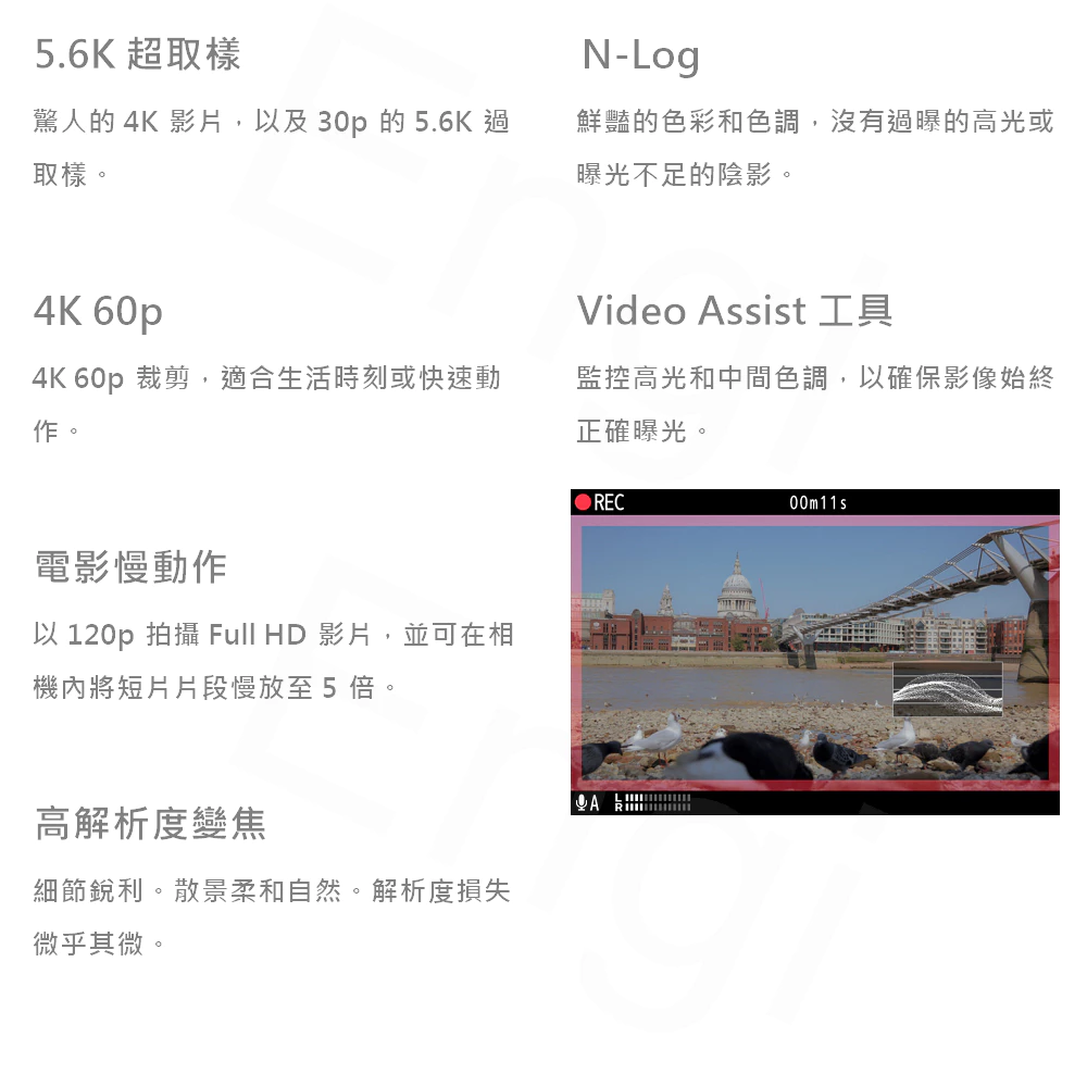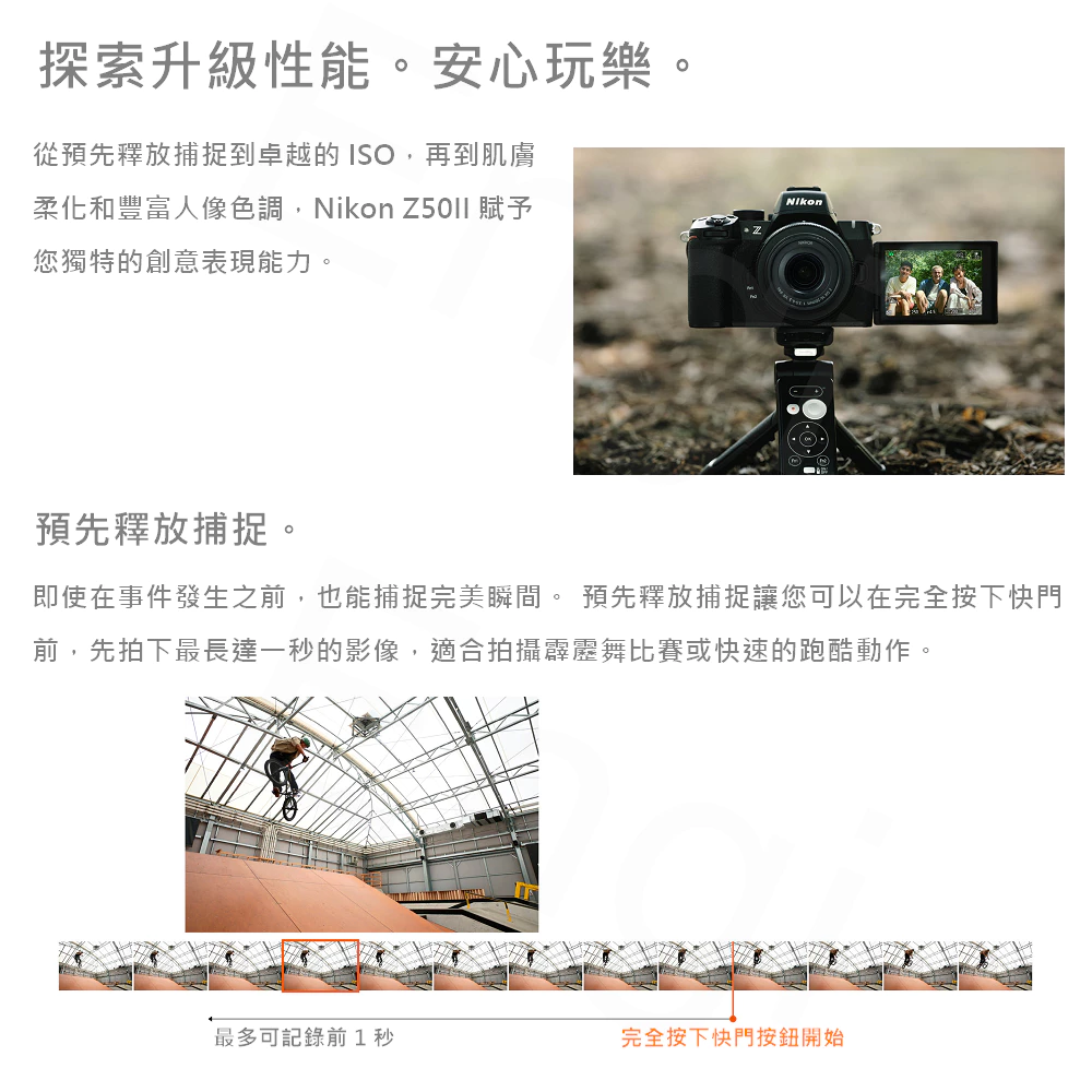 • 30 fps高速連拍,能釋放前拍攝