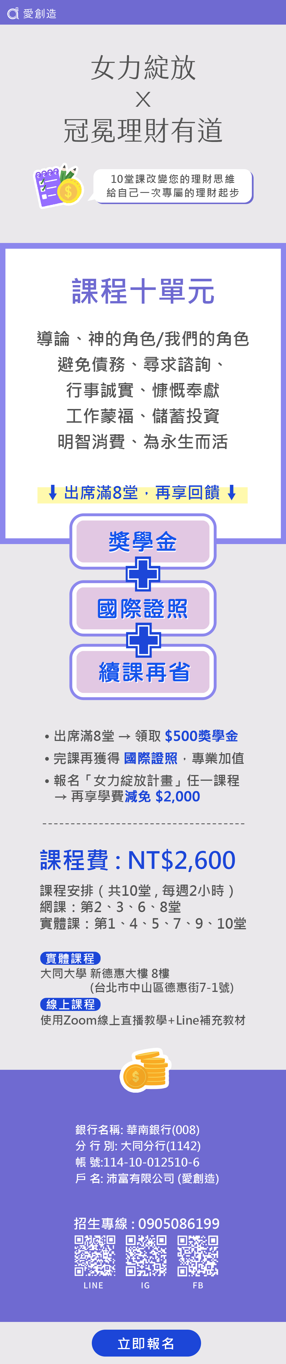 脫離月光生活【課程特色】實際操作學習技巧 養成理財好習慣