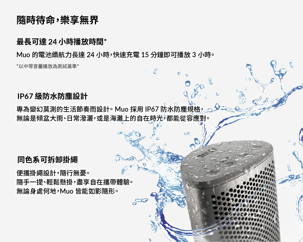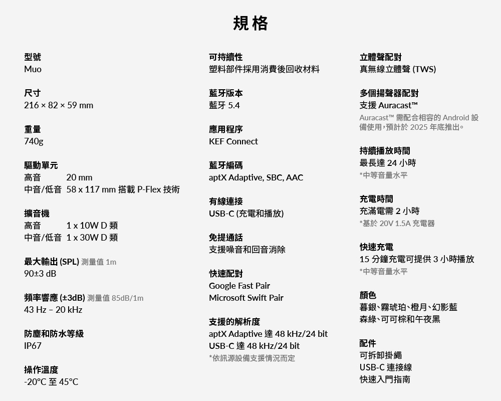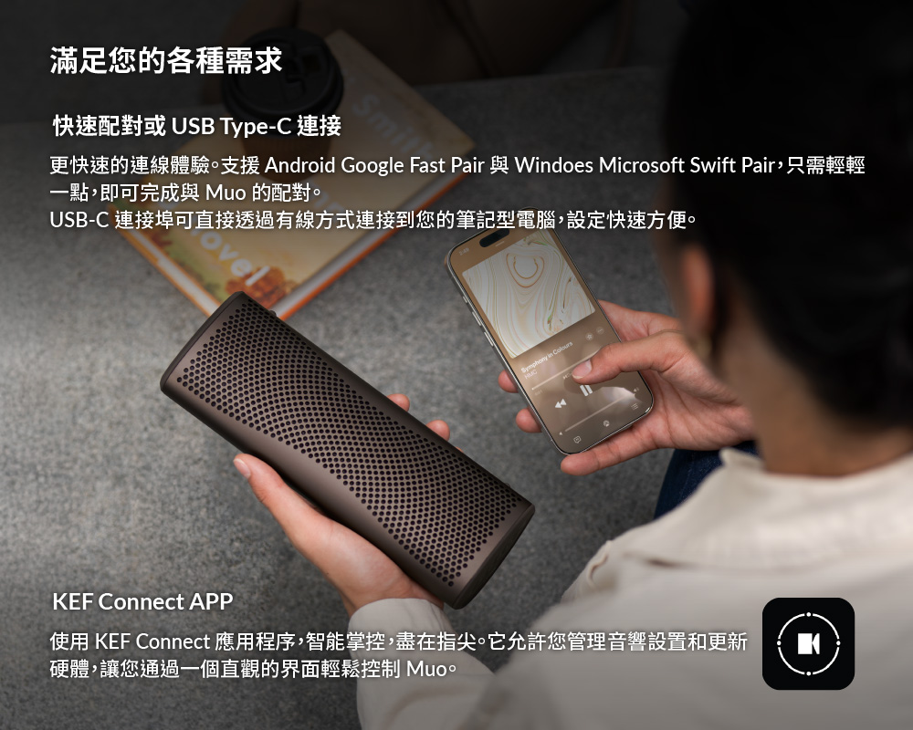 【KEF 】Muo 可攜式喇叭 HiFi 藍牙揚聲器 24小時續航 IP67 防水防塵 設計