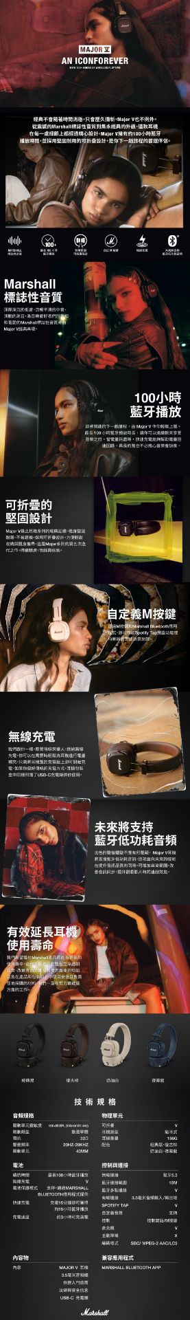 ●MARSHALL標誌性音質 ●約100小時藍牙撥放 ●堅固耐用可摺疊設計 ●自定義M按鍵