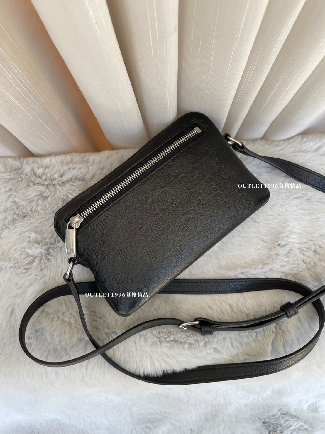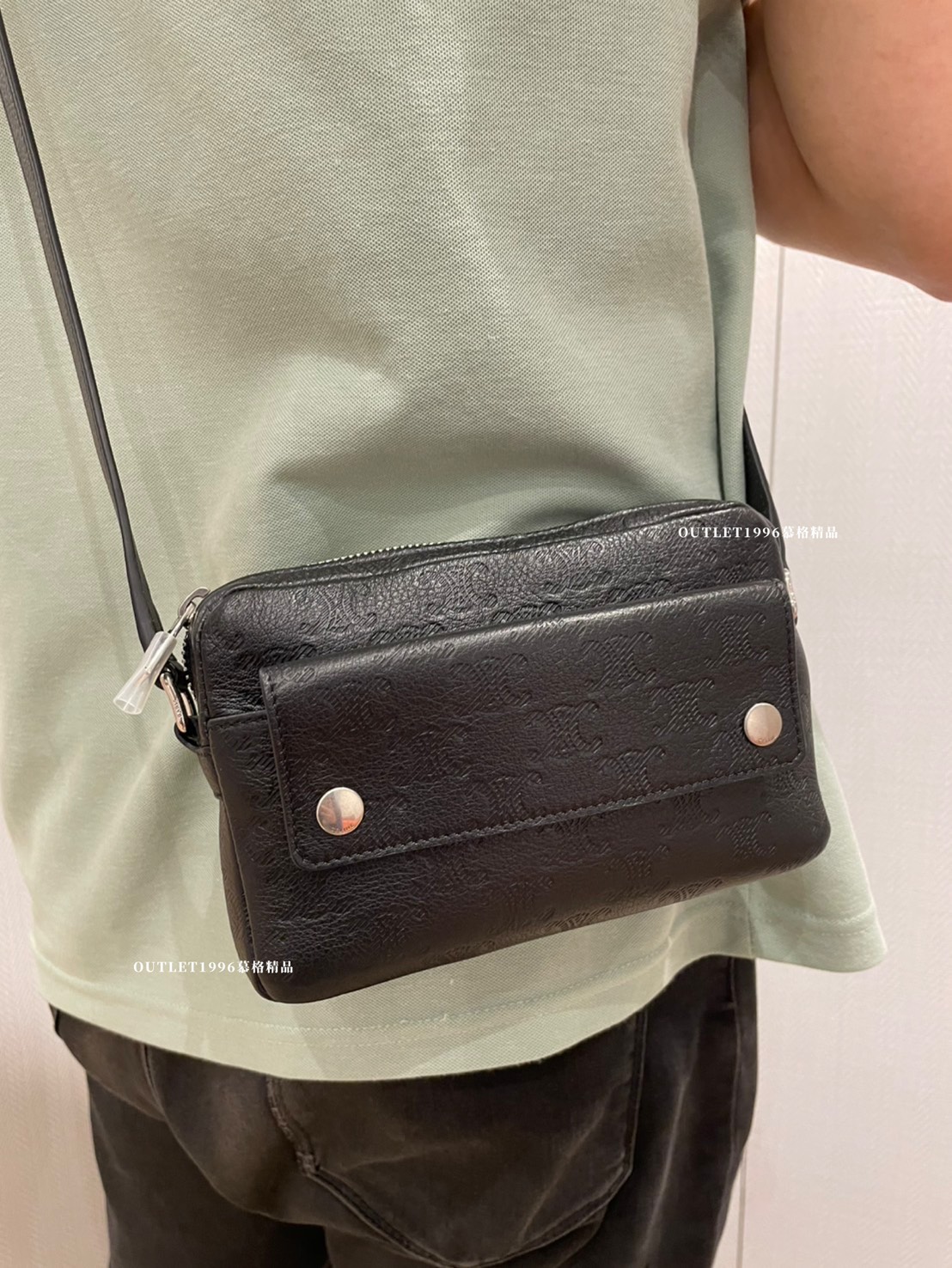 CELINE TRIOMPHE 黑色壓花皮革相機包