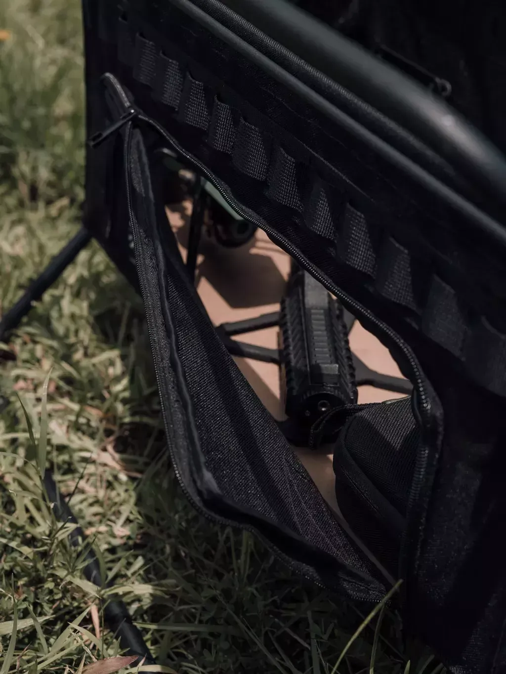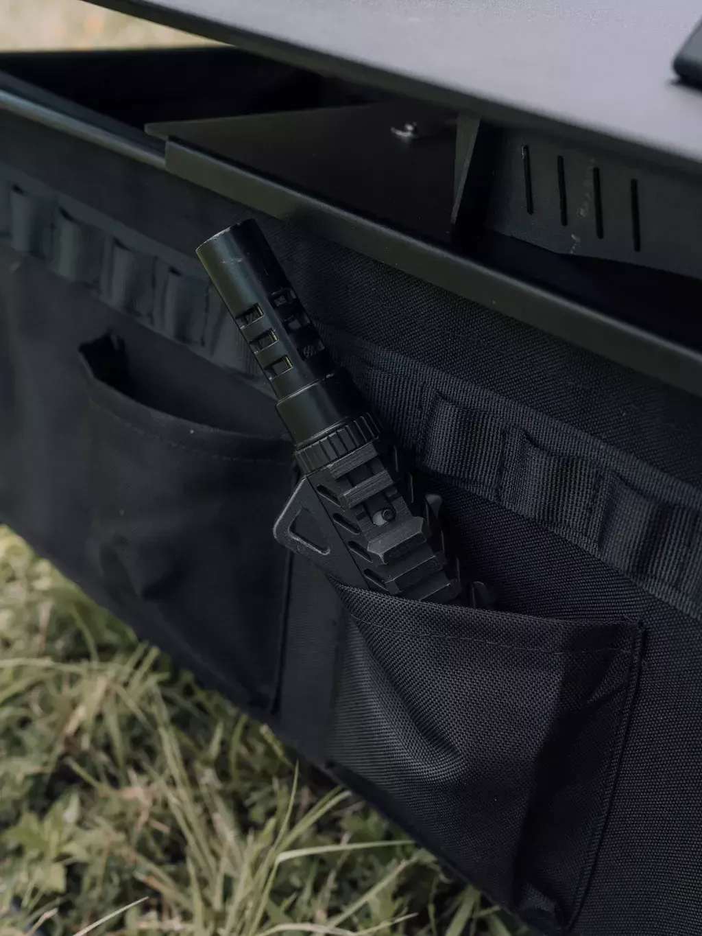 收納的設計採用1008D類卡杜拉尼龍布料,確保了耐用性和可靠性。更重要的是,MOLLE戰術織帶的添加,使您可以方便快速地吊掛物品,讓您的工作空間更加有彈性。此外,側邊的拉鍊開蓋設計,不論是在檯面放置物品還是使用時,都能輕鬆地拿取所需物品。