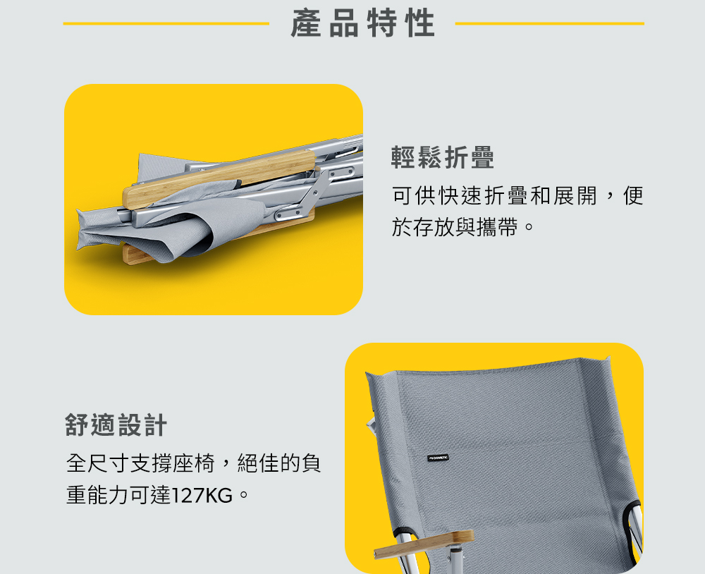 • 全尺寸支撐座椅,絕佳的負重能力可達127KG