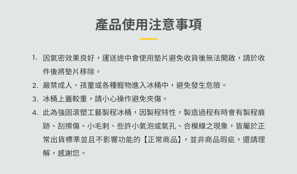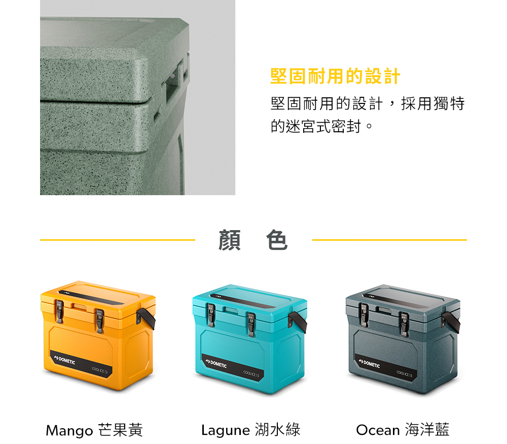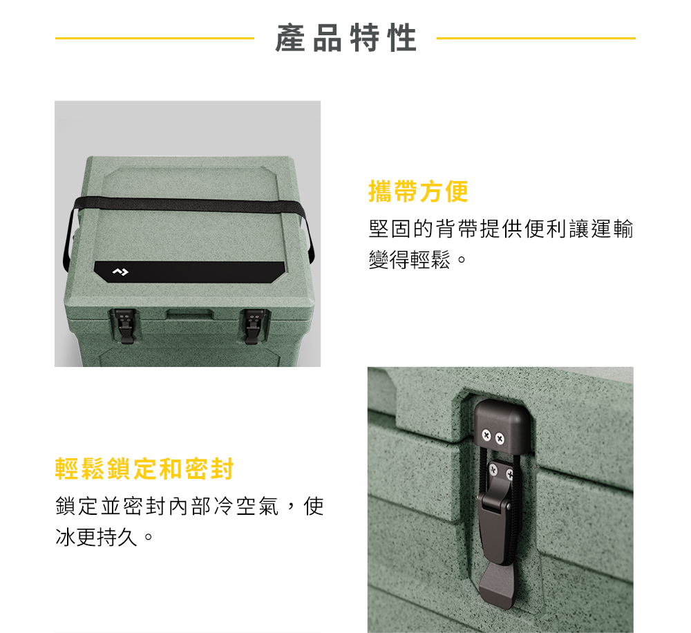 - 厚實的隔熱層和獨特的密封設計保冰時間更長