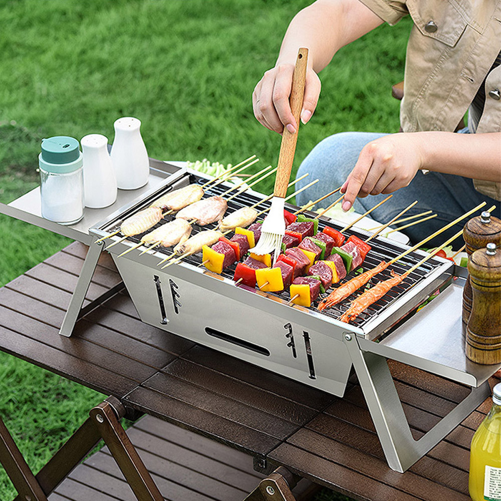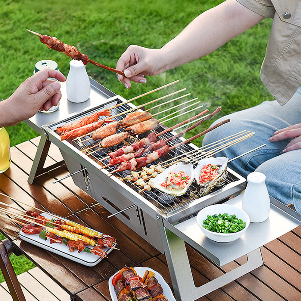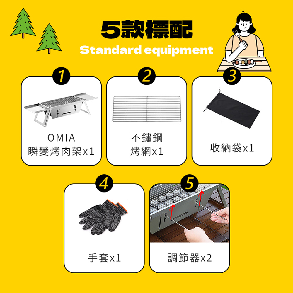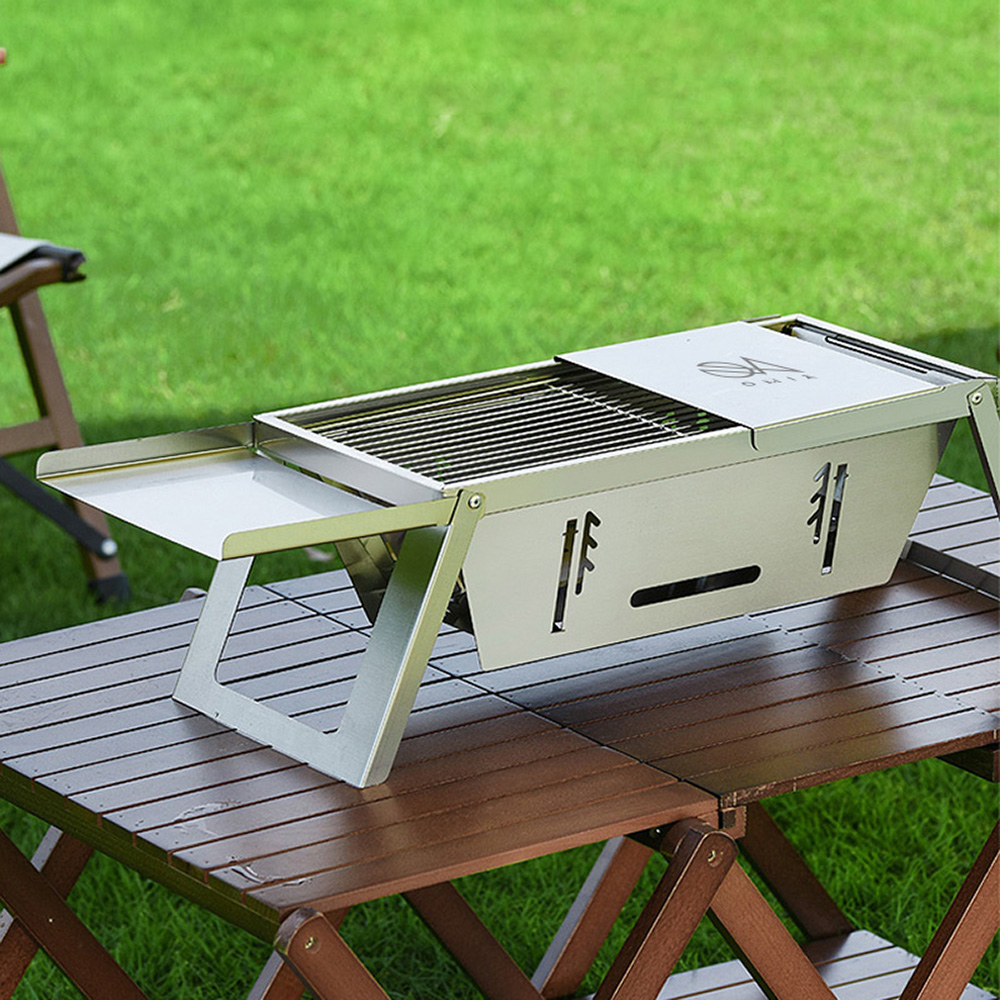 ◇無複雜結構,1秒快速立架&收納 ◇輕巧便攜,收折厚度僅2公分 ◇採不鏽鋼材質,安心耐用 ◇三檔火力升降,完美控制火侯