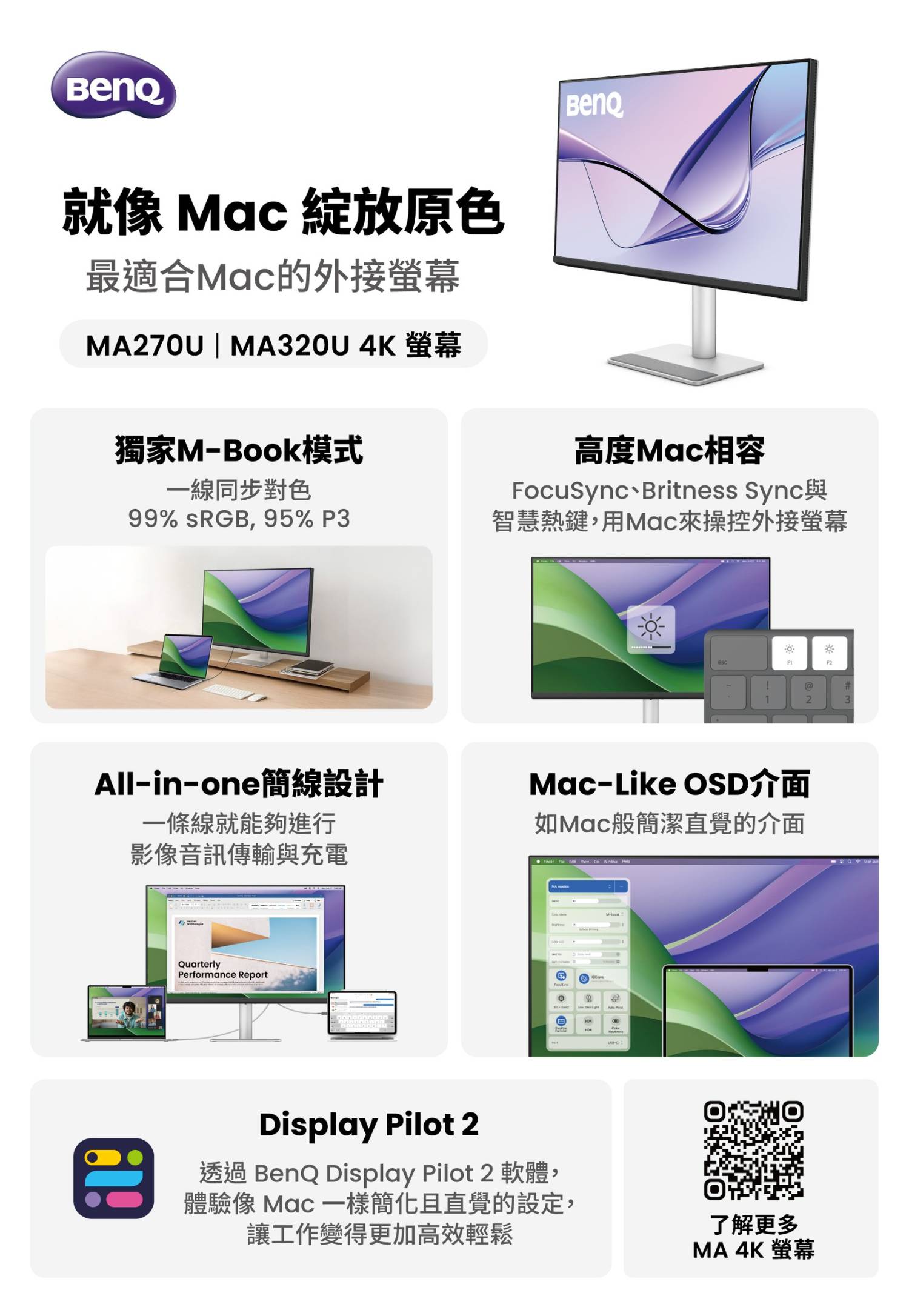 BenQ 明基MA270U 4K 最適合Mac外接護眼螢幕(27型/4K/HDMI/USB-C/IPS)