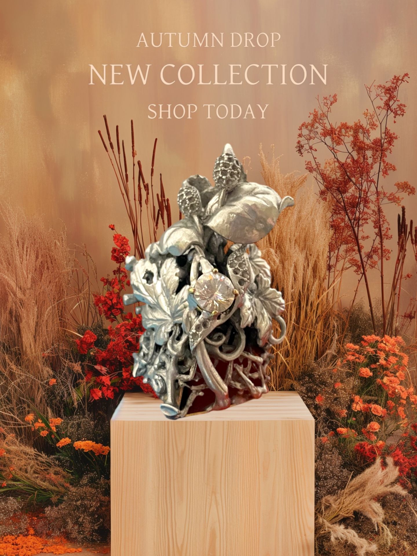 在一年中最溫馨的季節裡,揀選以「四季」為靈感,創作出這款融合自然與情感的金工藝術品。作品以細膩的工藝描繪春的繁花、夏的烈日、秋的豐穰與冬的靜美,展現四季輪轉的和諧韻律。中間鑲上一克拉的璀璨鑽石,宛如冬日夜空中最耀眼的星辰,為作品注入永恆的光芒。