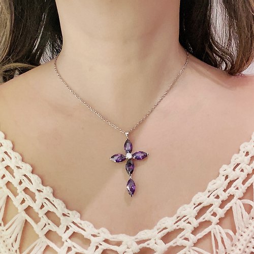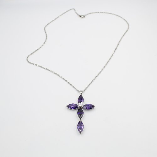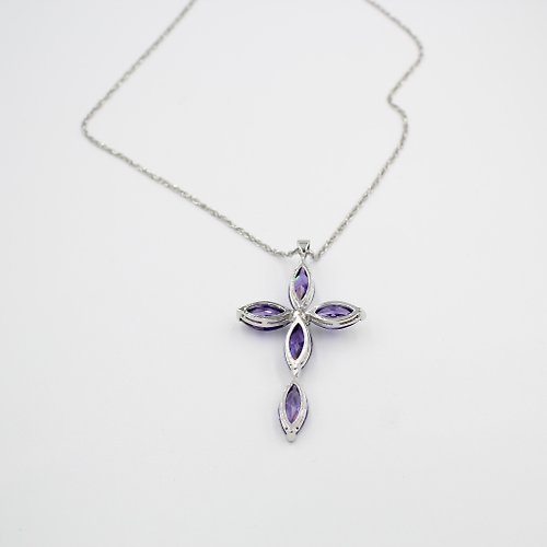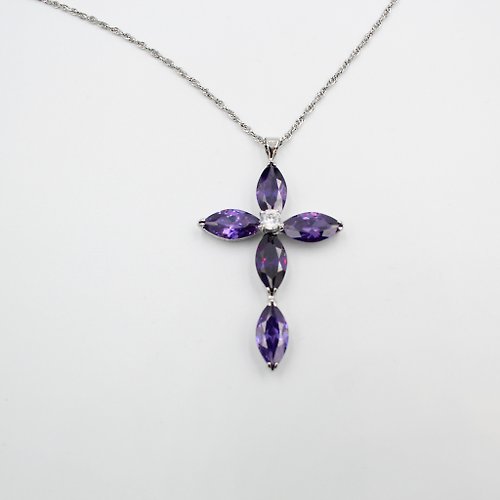✨神秘、高貴、迷人✨紫色鋯石 ✨不鏽鋼鍊-可選擇16、18、20吋長度✨金屬工藝✨不褪色不過敏
