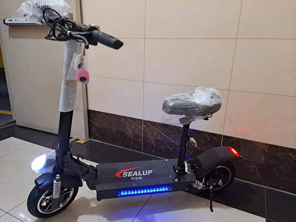 🚩時速--三檔速控,最快45km 🚩馬達--400w電機 🚩電池--36v / 10.4a 鋰電池 🚩煞車--前後雙電子碟煞(EABS) 🚩鎖車--NFC卡片/遙控器 🚩輪胎--十吋朝陽真空防爆胎 🚩避震--前後雙彈簧避震 🚩重量--20kg 🚩續航--二檔30km(依騎乘狀況為準) 🚩其他--工業頭燈、煞車尾燈、新款折疊、側邊燈條,附大座椅、扳手工具組。無方向燈。