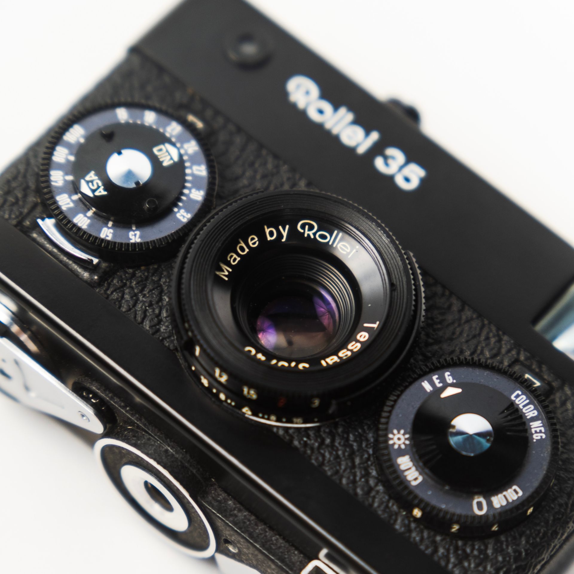 Rollei 35 是一台經典的袖珍底片相機,首次推出於1966年。這款相機以其精巧的設計和卓越的製造品質著稱,當年是世界上最小的135格式底片相機之一。 Rollei 35 採用方正的設計,雖然體積小巧,但握感扎實,機身以金屬材質打造,增加了耐用性。相機體積小,鏡頭可以倒裝回相機內,進一步縮小體積,增加便攜性,適合街拍及旅行攝影。 完全手動操作,包括對焦、快門速度與光圈設定,讓拍攝過程充滿復古的手感與樂趣。 Tessar 40mm f/3.5 鏡頭以其清晰度和成像質量優秀而著稱,能夠提供銳利的影像效果。
