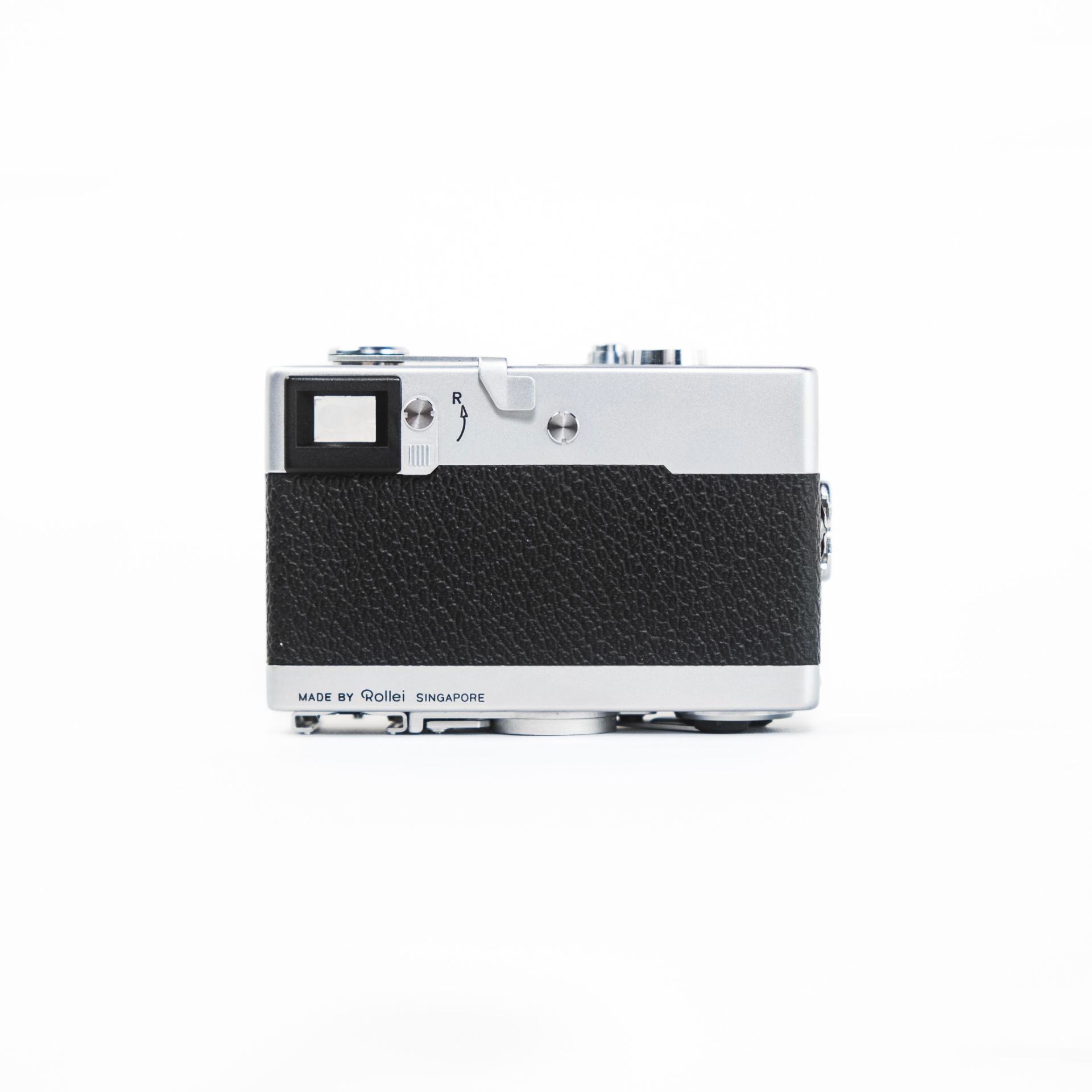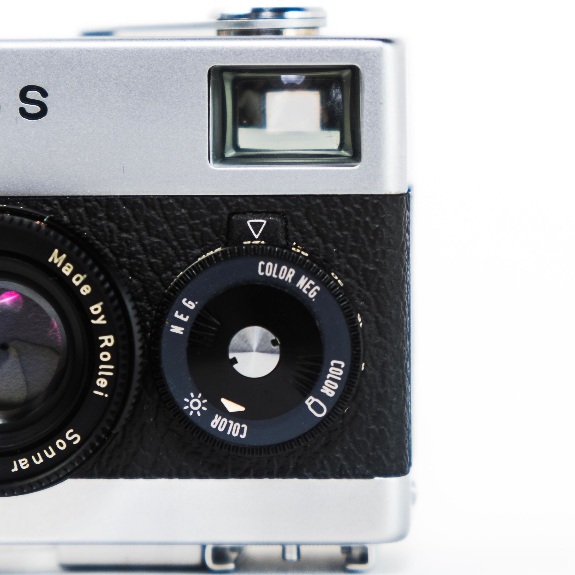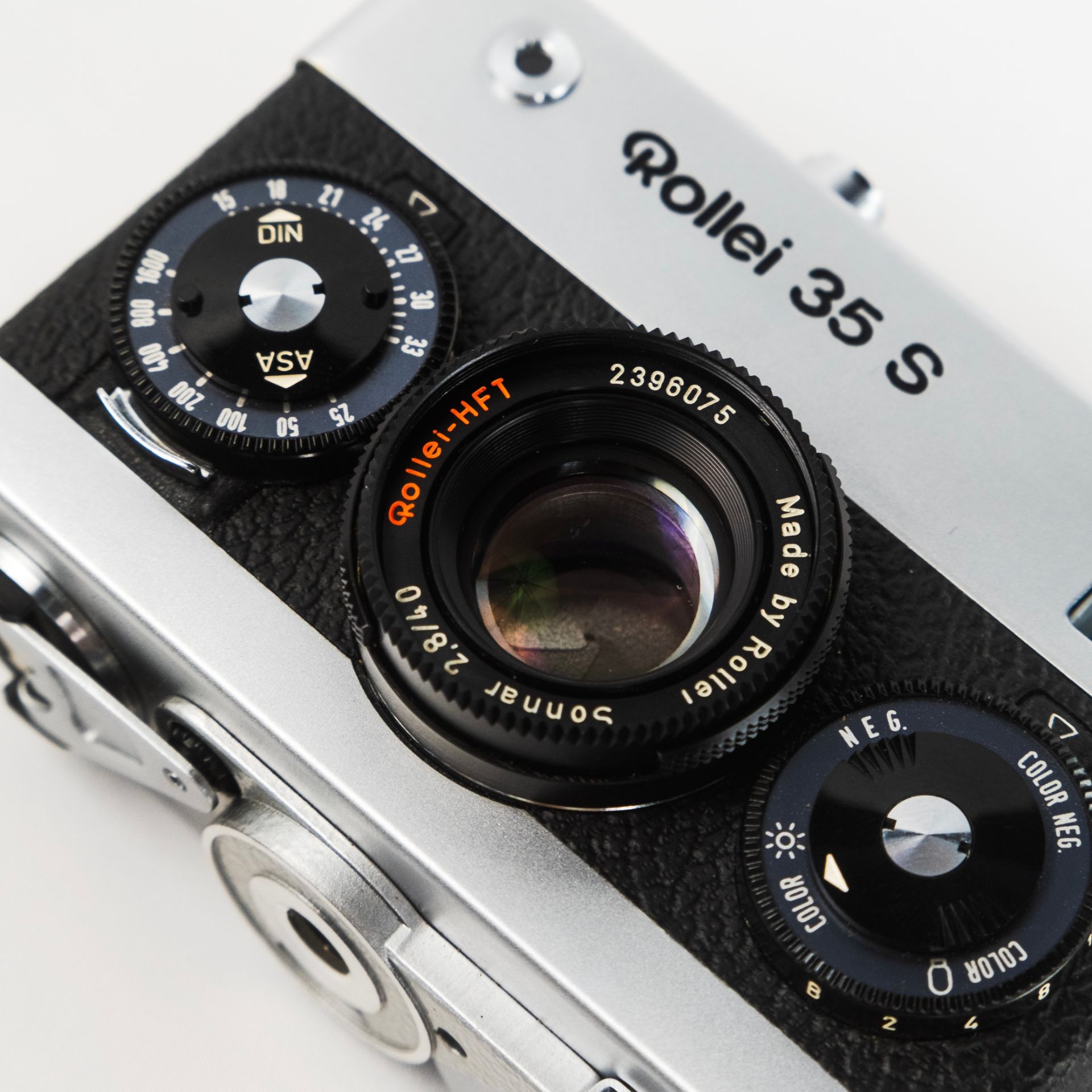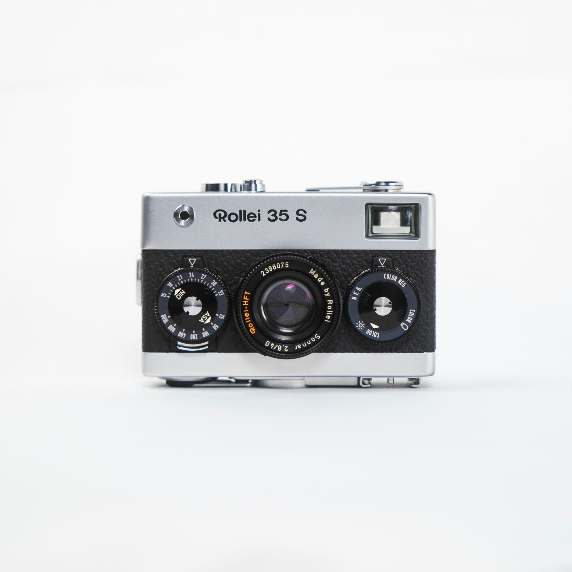 Rollei 35 S 是 Rollei 在 1974 年推出的經典相機,延續了 Rollei 35 系列一貫的小巧精密設計,並搭載了高品質的 Zeiss Sonnar 鏡頭。 Sonnar 鏡頭以高銳度、細膩對比和出色色彩還原聞名,最大光圈 f/2.8 在同系列相機中表現優異,適合各種光線條件下的拍攝需求,尤其是在低光環境中依然能捕捉清晰的影像。 Rollei 35 S 在體積上仍是全球最小的 135 底片全幅相機之一。其尺寸讓攝影師可以輕鬆攜帶外出,是街拍、旅行的理想相機。 捲片桿位於機身底部,且每次拍攝完畢需手動捲片,操作過程中帶有機械感,對於習慣現代相機的使用者來說,這是 Rollei 35 S 富有魅力的操作細節。
