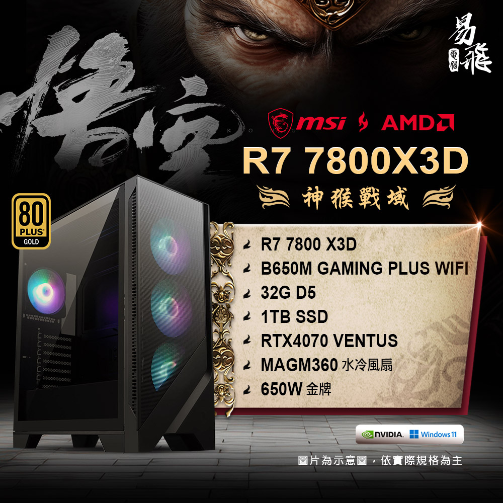 MSI 微星 黑神話:悟空 神猴戰域 電競電腦 AMD 7800X3D 組裝機