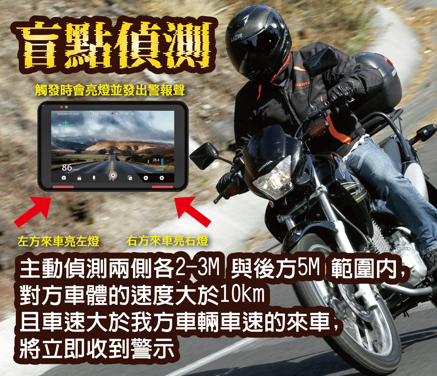 ✔內建盲點偵測及競速模式功能