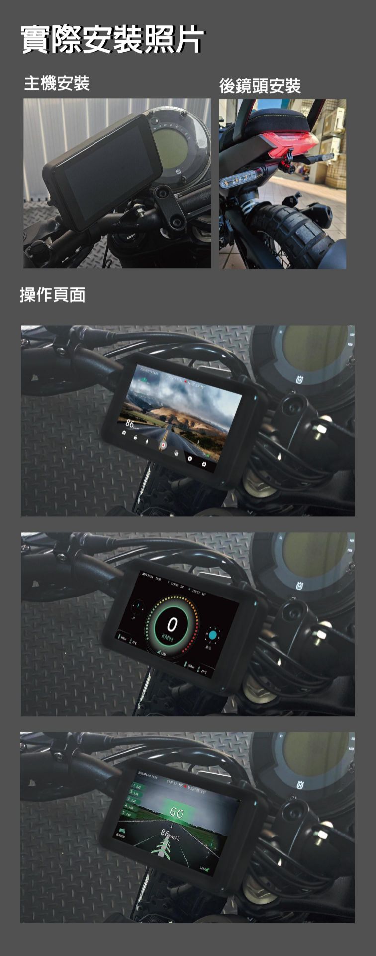 為了您的行車安全 , 請勿在行車時觀看影片或操作本產品 ; 若要安裝及設定本產品 , 請先將機車停至安全的地方 。