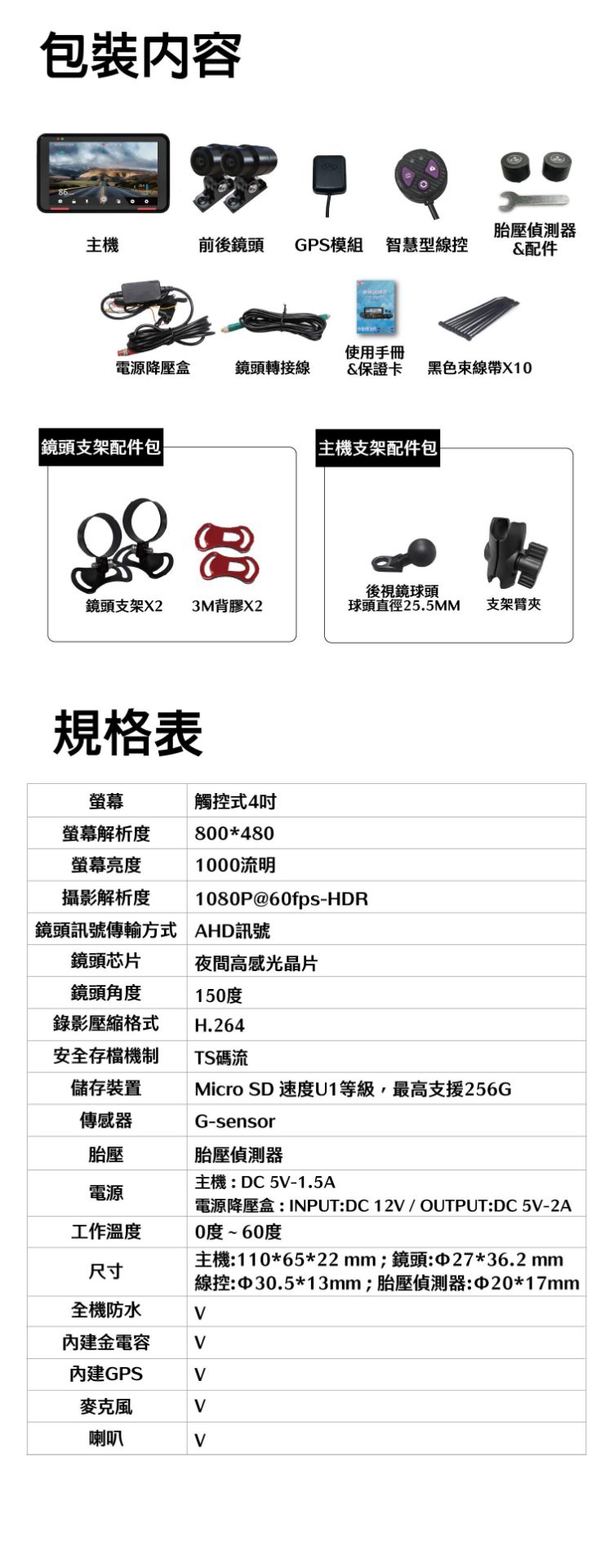 ✔前後1080P@60FPS