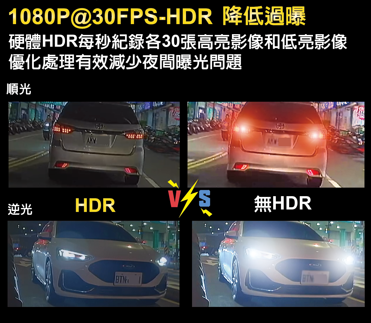 ✔前後1080P@30FPS一 HDR 夜間不過曝