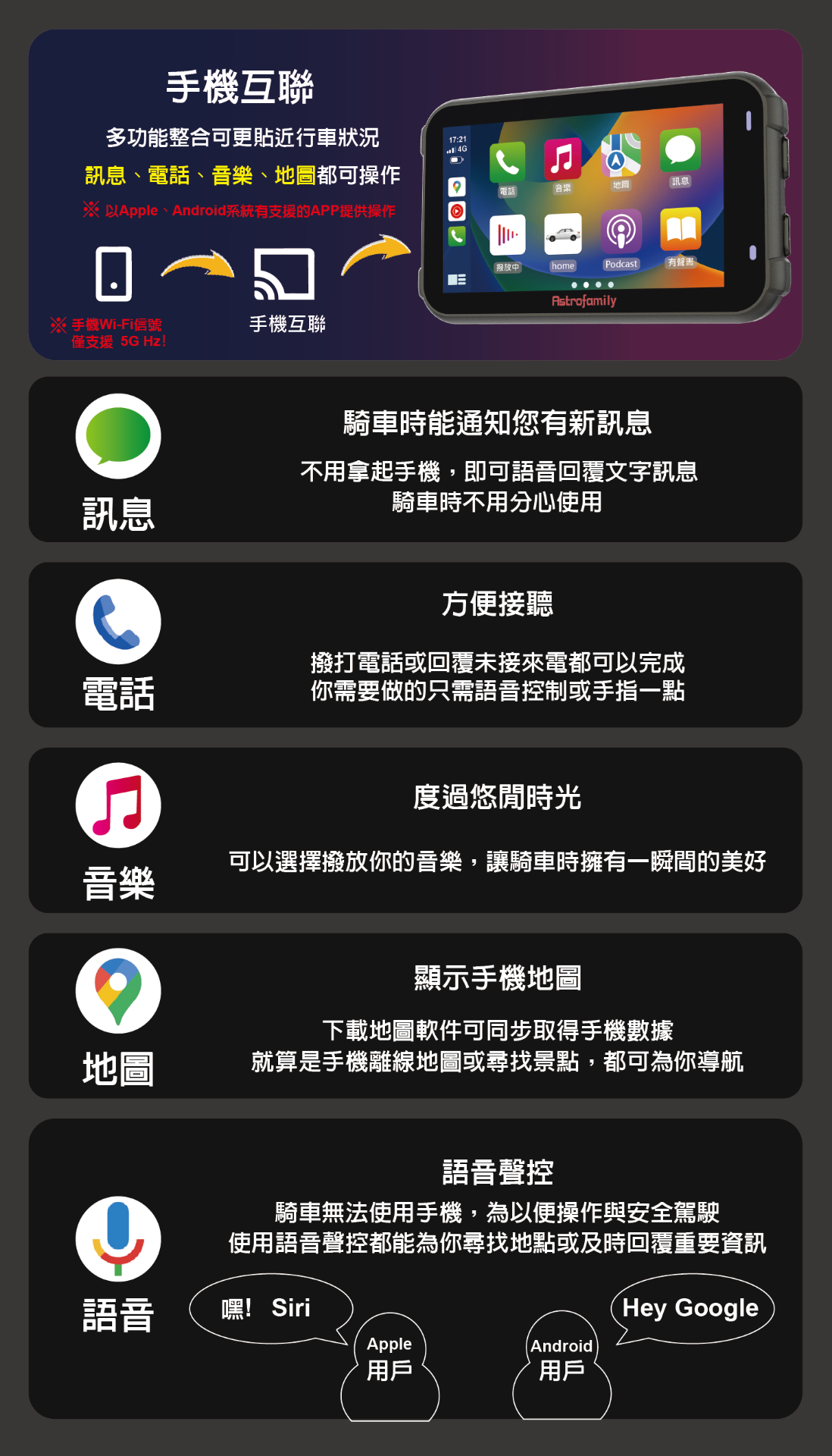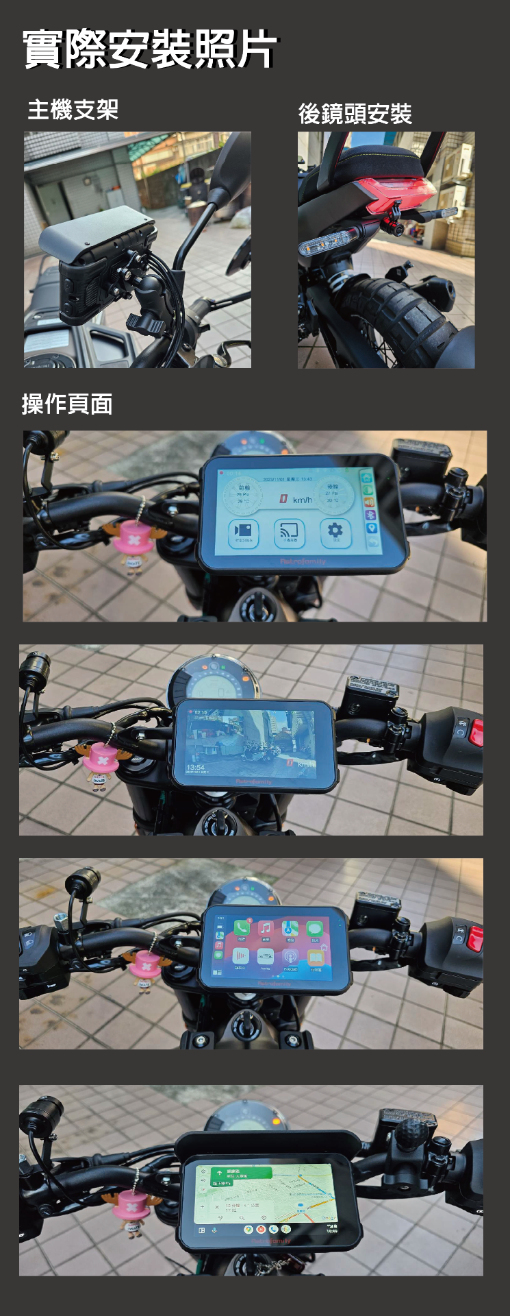 為了您的行車安全 , 請勿在行車時觀看影片或操作本產品 ; 若要安裝及設定本產品 , 請先將機車停至安全的地方 。